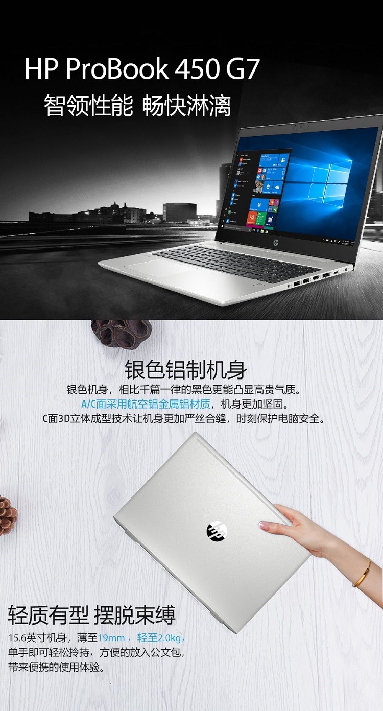 - 商品名称:HP ProBook 450 G7 15.6"独显主流商务本 i5-10210u 8G 混合硬盘128GB SSD 1TB 2G独立显卡 无光驱 15.6英寸 DOS 2.0Kg