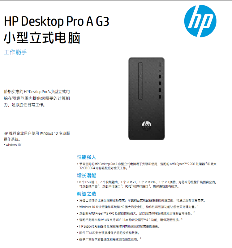 商品名称:HP Desktop A G3 21.5"台式机 AMD Ryzen3 3200G 8G 机械硬盘 1T 集成显卡 硬盘保护、网络同传 21.5英寸液晶 DOS 原厂三年质保