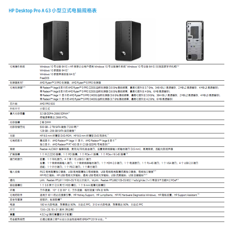 HP Desktop A G3 21.5"台式机 AMD Ryzen3 3200G 8G 机械硬盘 1T 集成显卡 硬盘保护、网络同传 21.5英寸液晶 DOS 原厂三年质保