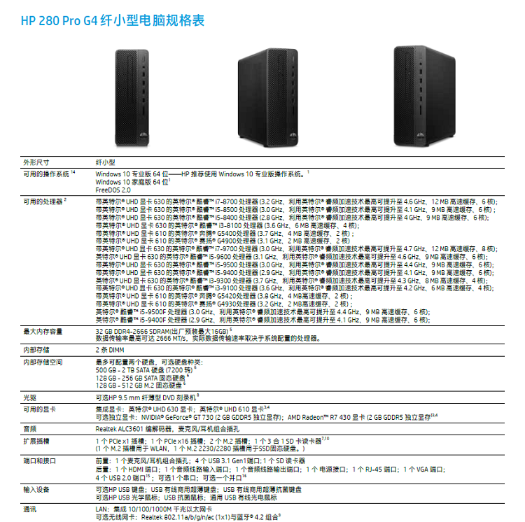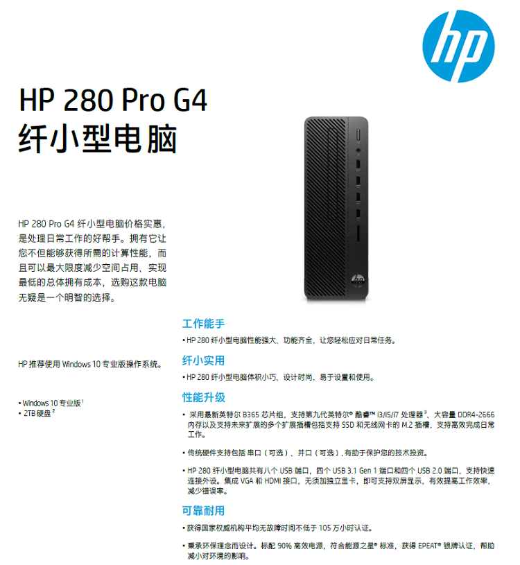 - 商品名称:HP 280 G4 SFF 21.5 台式机 i3 9100 8G 机械硬盘1T 集成显卡 硬盘保护、网络同传 DOS 21.5 液晶显示器 原厂三年质保