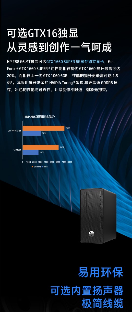 HP 288 Pro G6 MT/台式机i5 10500 8G 混合硬盘256GB SSD 机械硬盘 1T 2G独立显卡 无显示器 DOS 原厂三年质保