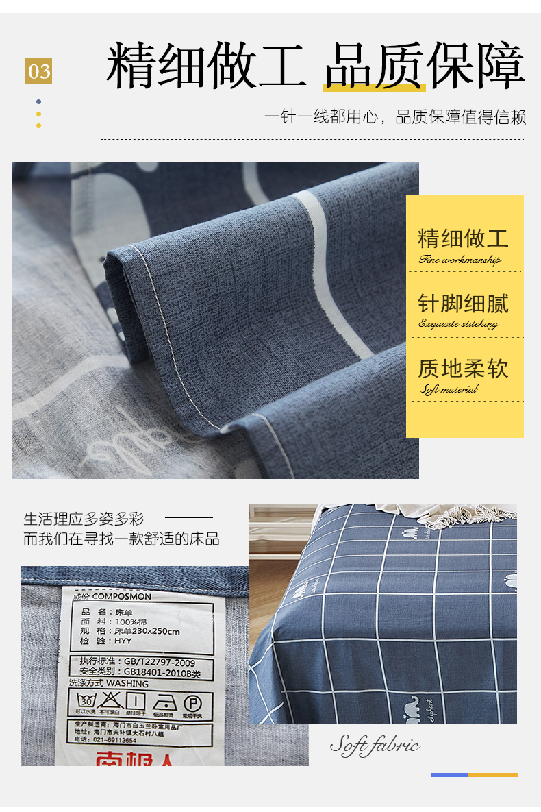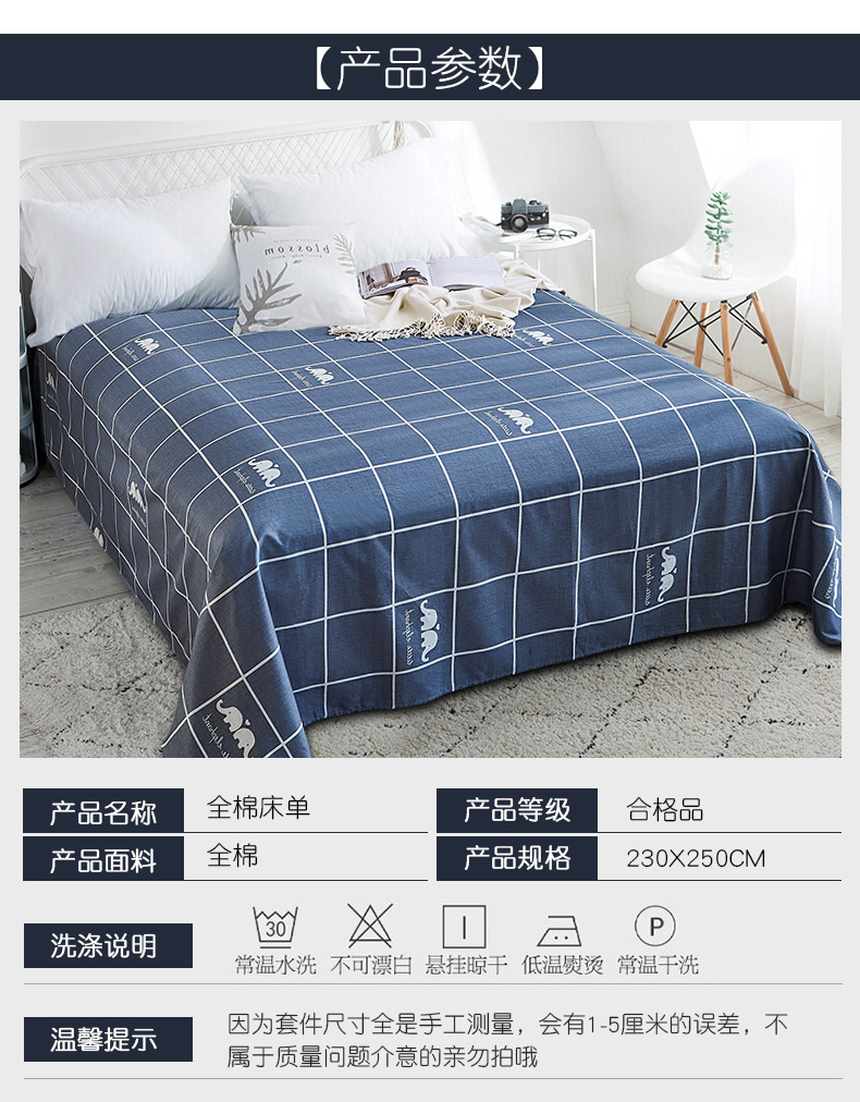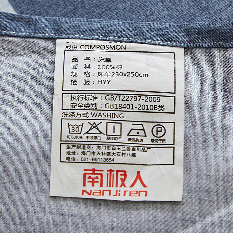 商品名称:南极人NanJiren 全棉床单 纯棉双人单人被单床罩单件 1.5米/1.8米/2米床 230*250cm