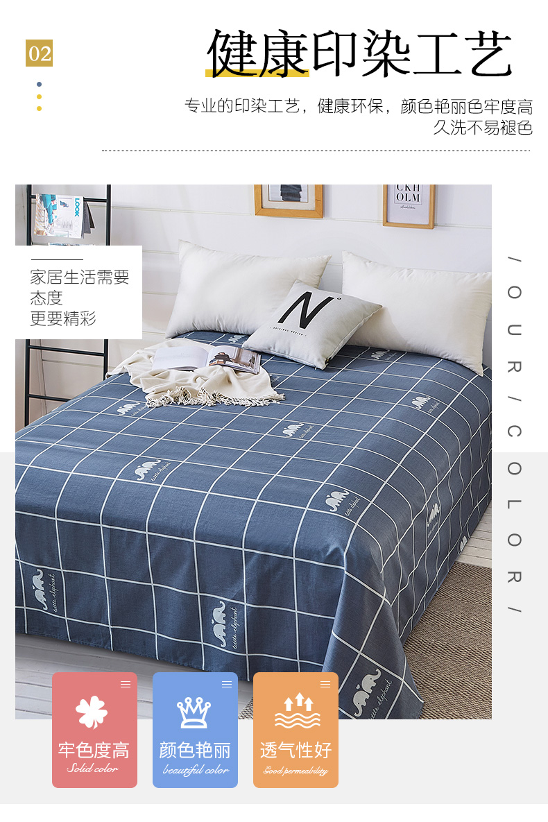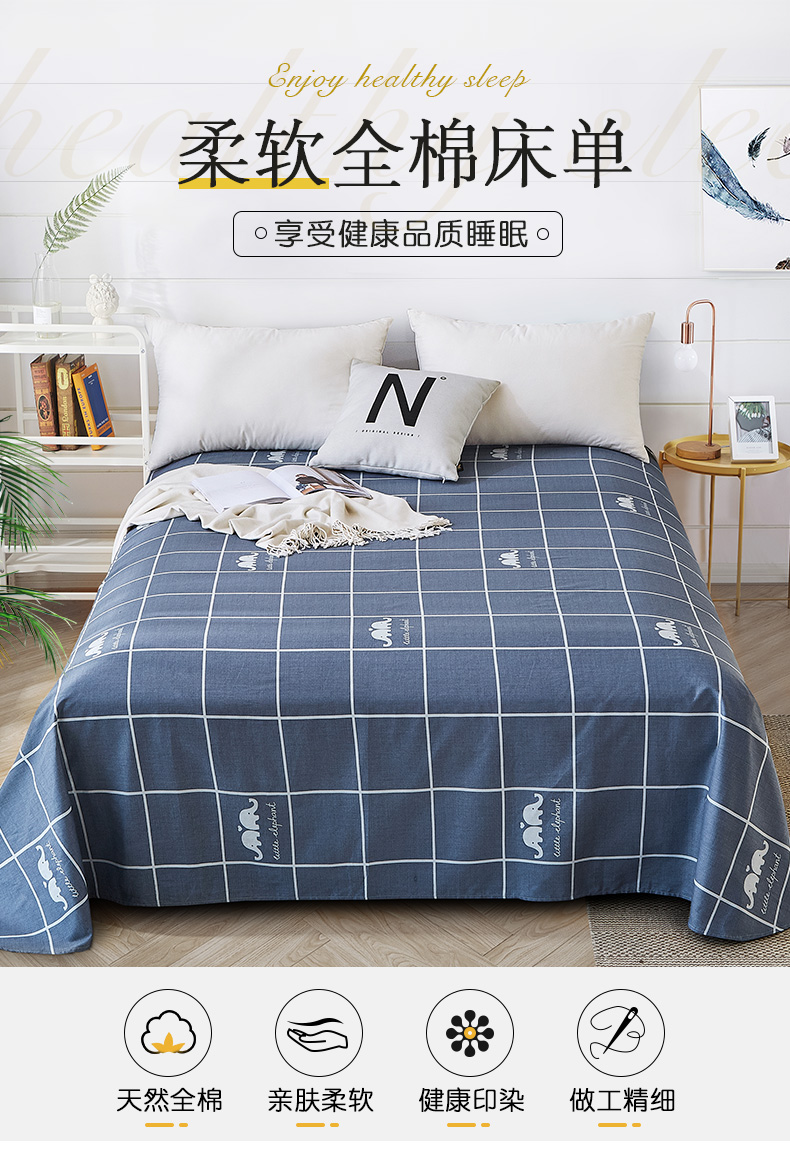 南极人NanJiren 全棉床单 纯棉双人单人被单床罩单件 1.5米/1.8米/2米床 230*250cm
