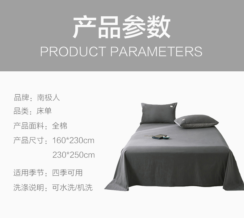 - 商品名称:南极人NanJiren 全棉床单单件纯棉ins风230*250cm 学生宿舍双人被单被罩 床垫套床裙