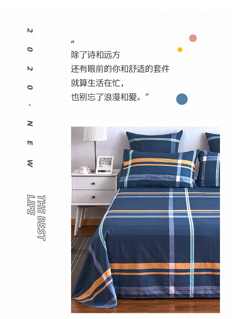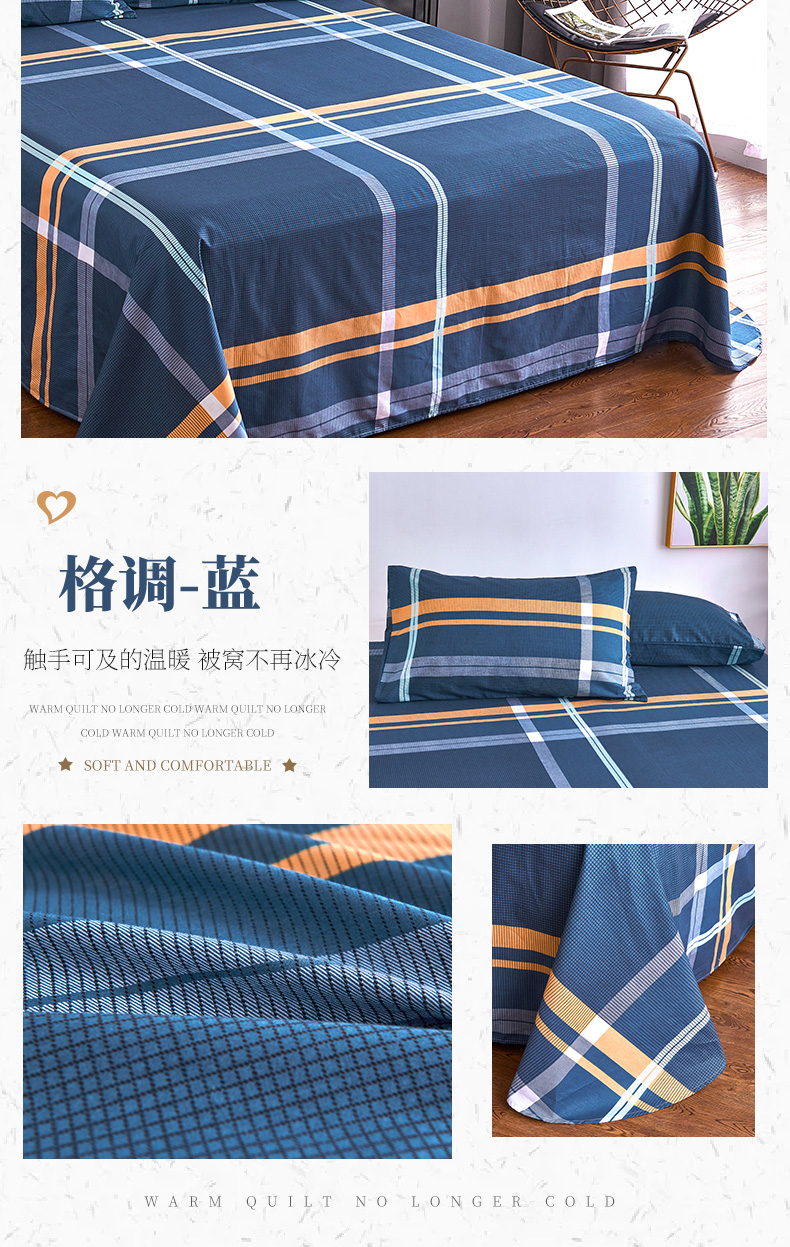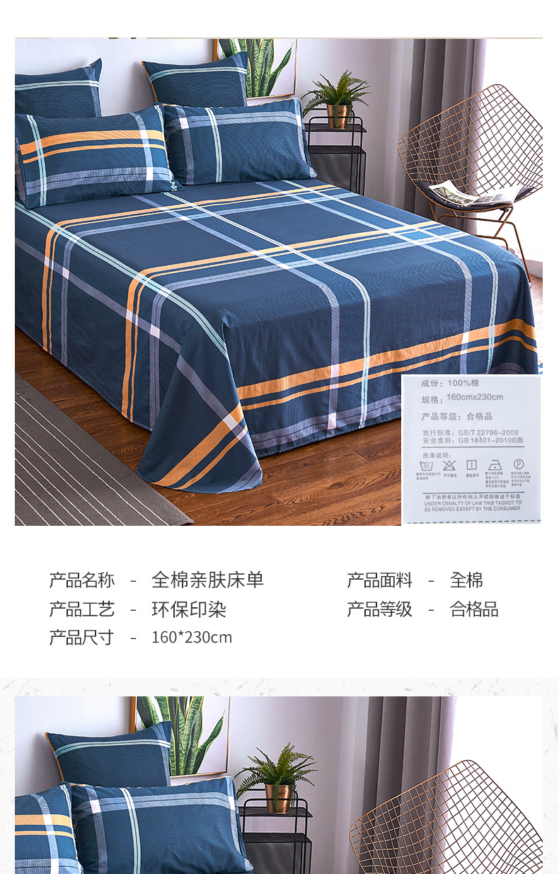 商品名称:南极人NanJiren 全棉床单单件 四季纯棉单人学生宿舍被单床罩 1米/1.2米/1.5米床 160*230cm