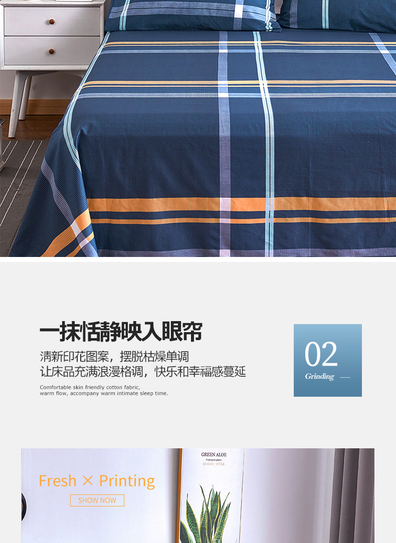 南极人NanJiren 全棉床单单件 四季纯棉单人学生宿舍被单床罩 1米/1.2米/1.5米床 160*230cm