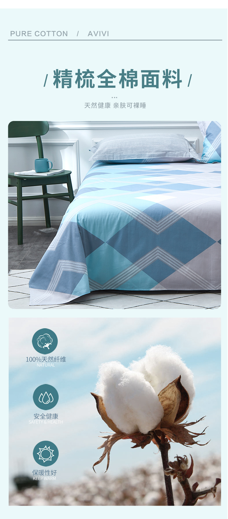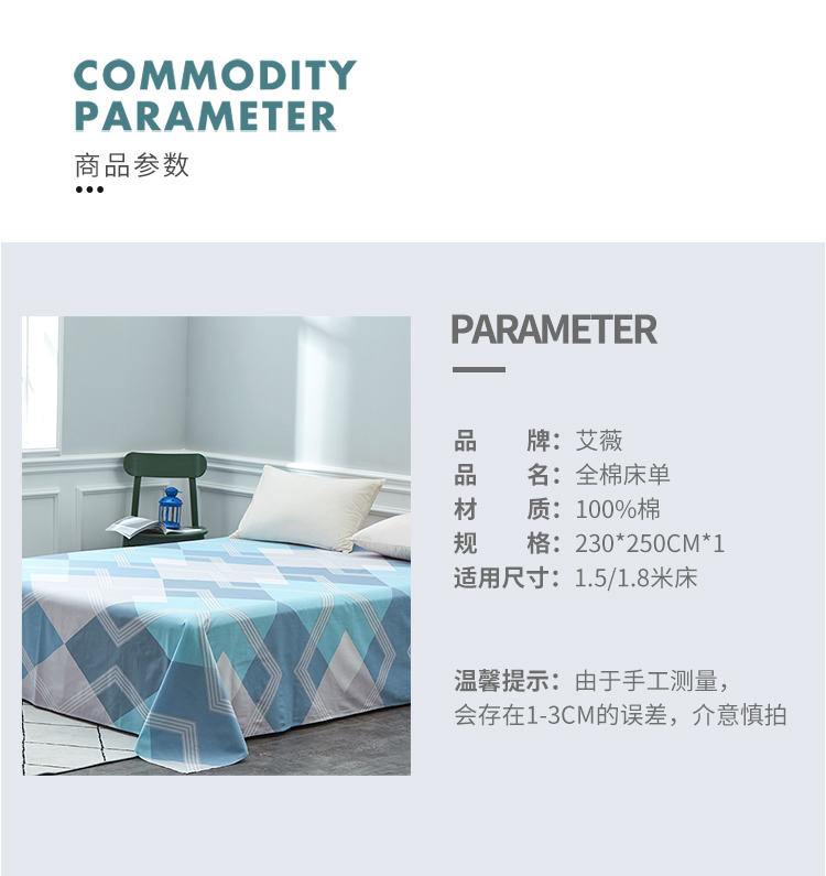 - 商品名称:艾薇 床单家纺 全棉斜纹印花被单 双人纯棉床单单件 巴德尔 1.5/1.8米床 230*250cm