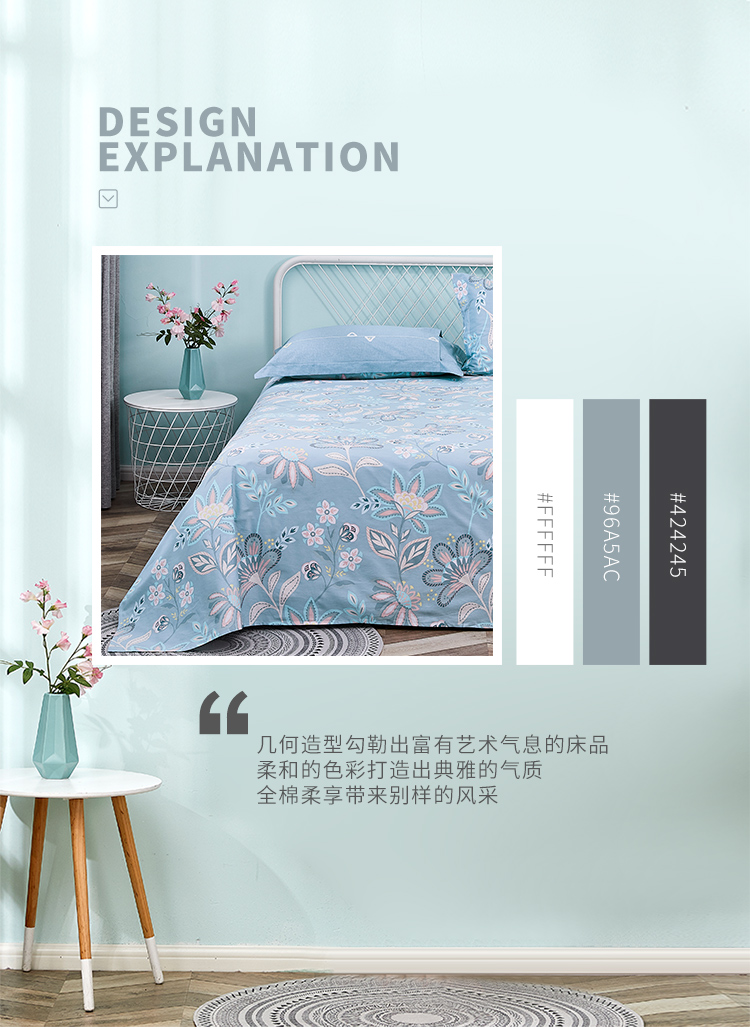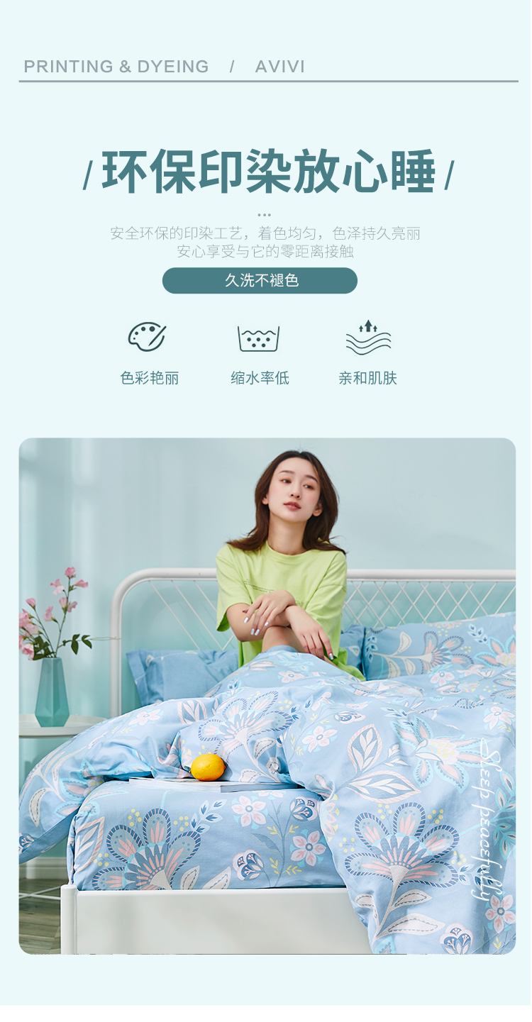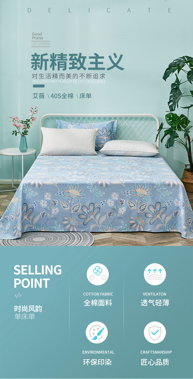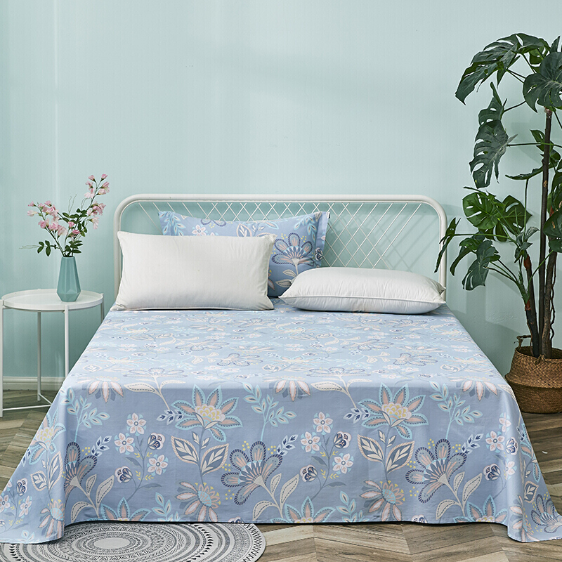艾薇 床单家纺 全棉斜纹印花被单 双人纯棉床单单件 月婉花庭 1.5/1.8米床 230*250cm
