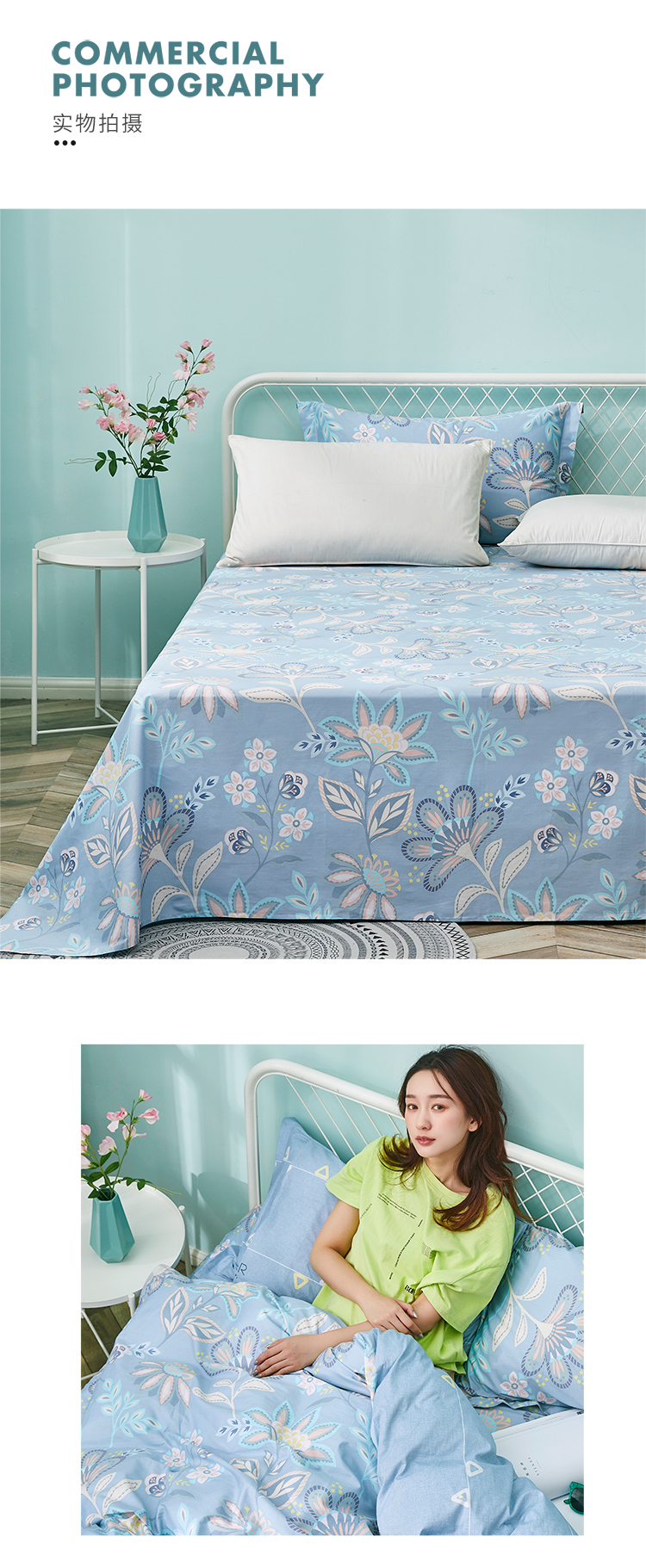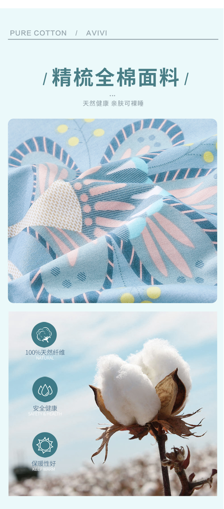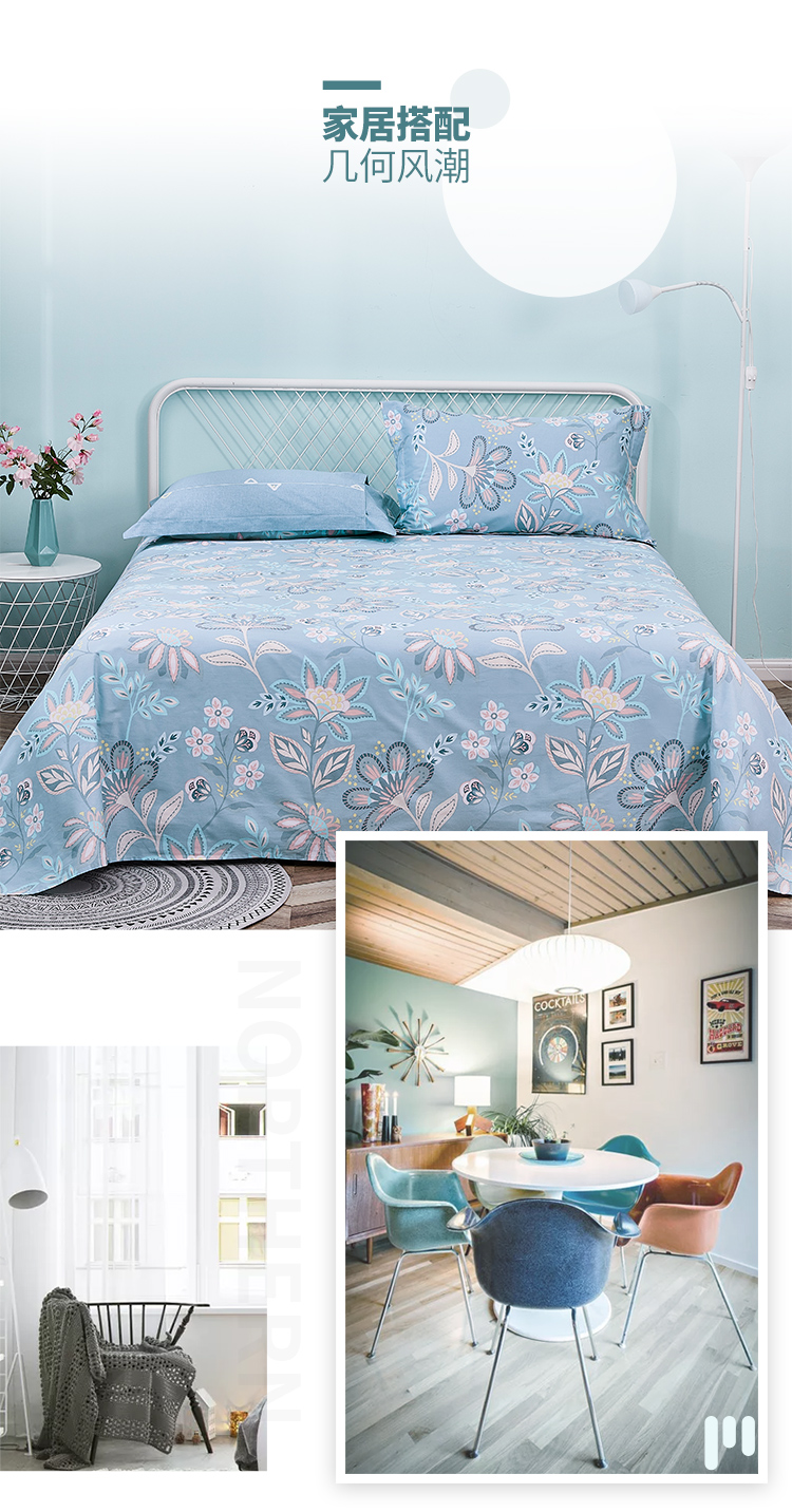 艾薇 床单家纺 全棉斜纹印花被单 双人纯棉床单单件 月婉花庭 1.5/1.8米床 230*250cm