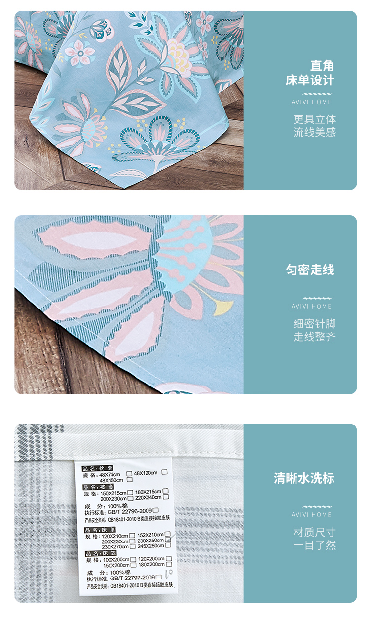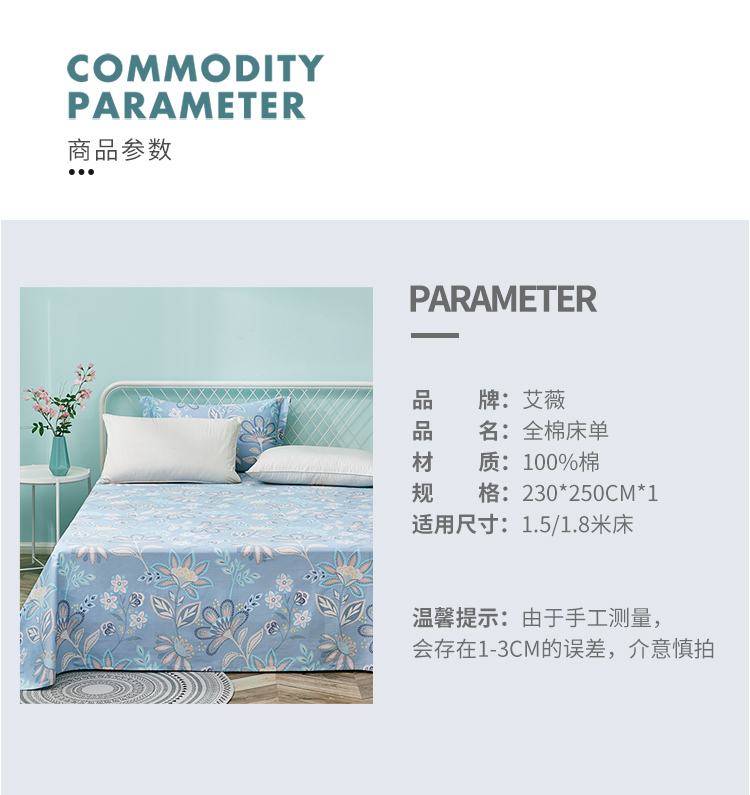 商品名称:艾薇 床单家纺 全棉斜纹印花被单 双人纯棉床单单件 月婉花庭 1.5/1.8米床 230*250cm