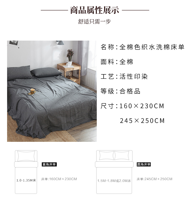 - 商品名称:北极绒 全棉床单单件 纯棉被单色织水洗棉双人床罩席梦思保护套 低调灰 245*250cm 1.5/1.8米床