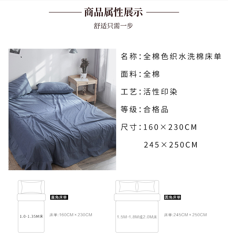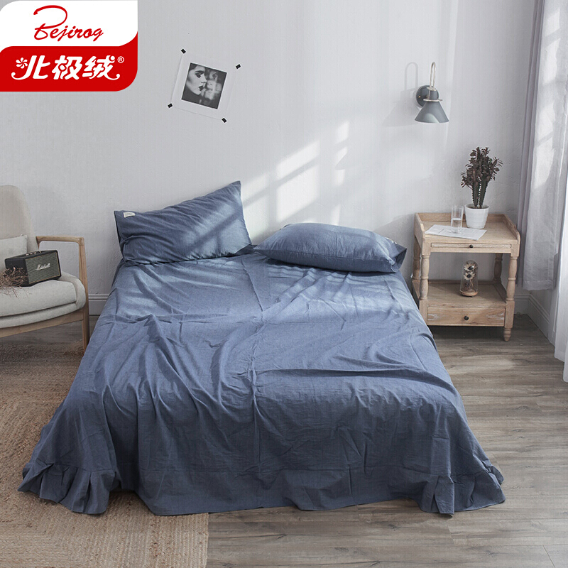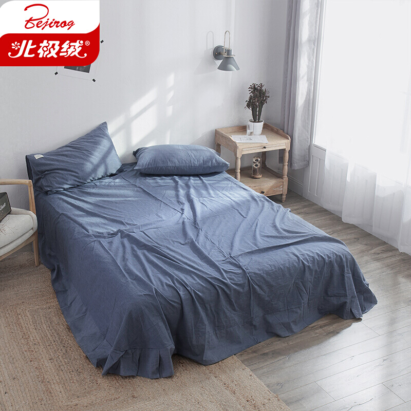 - 商品名称:北极绒 全棉床单单件 纯棉被单色织水洗棉双人床罩席梦思保护套 运动蓝 245*250cm 1.5/1.8米床
