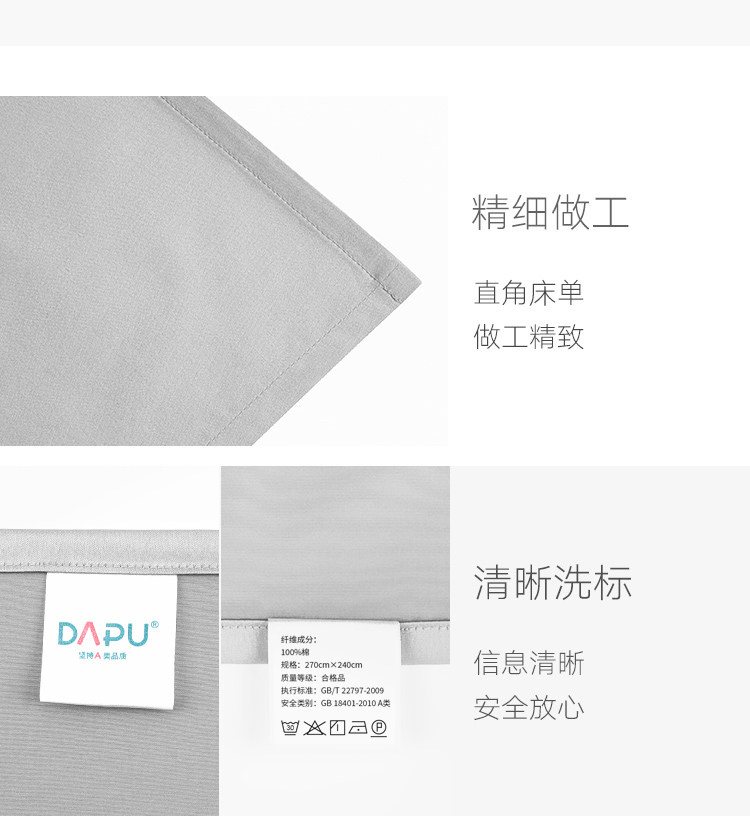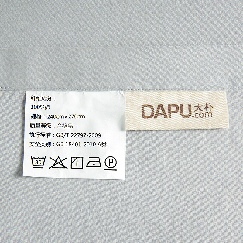 - 商品名称:大朴(DAPU)床单 A类床品 60支精梳纯棉缎纹纯色床单 大双人被单 银石灰 1.8米床 240*270cm