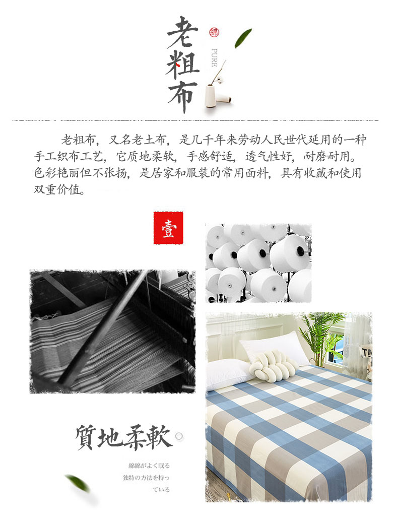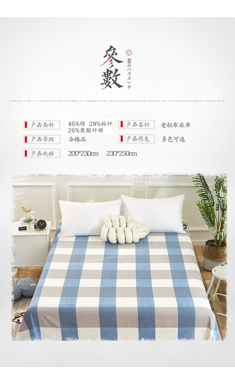 - 商品名称:雅鹿 床单 加厚老粗布床单可机洗单双人被单床罩单件1.5/1.8米床适用 蓝大格 200*230cm