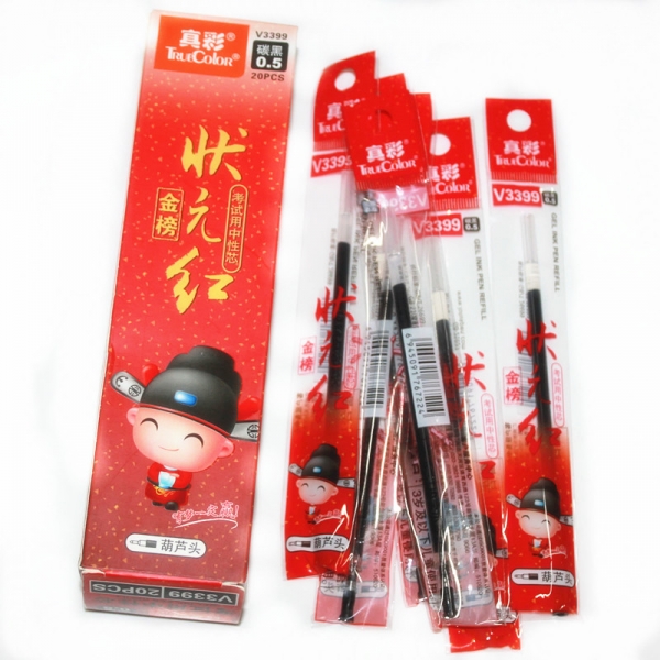 - 商品名称:真彩 V3399 状元红考试必备中性笔芯碳黑 20支/盒