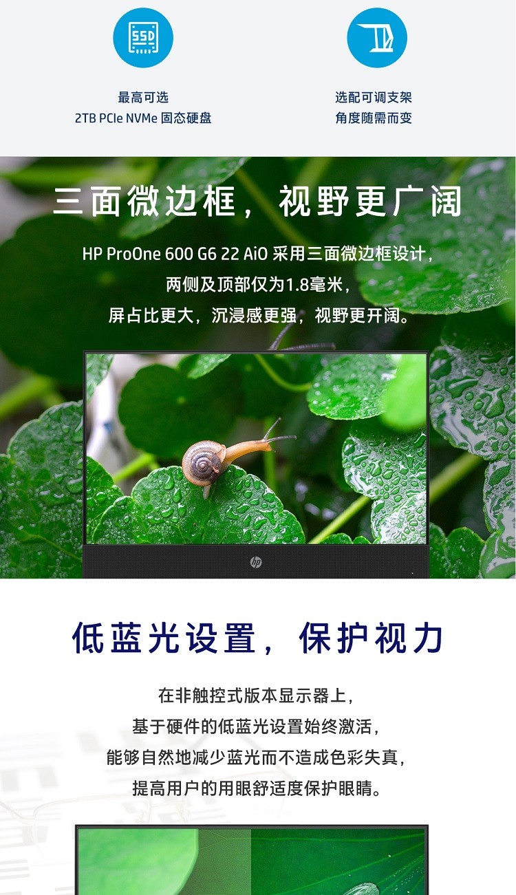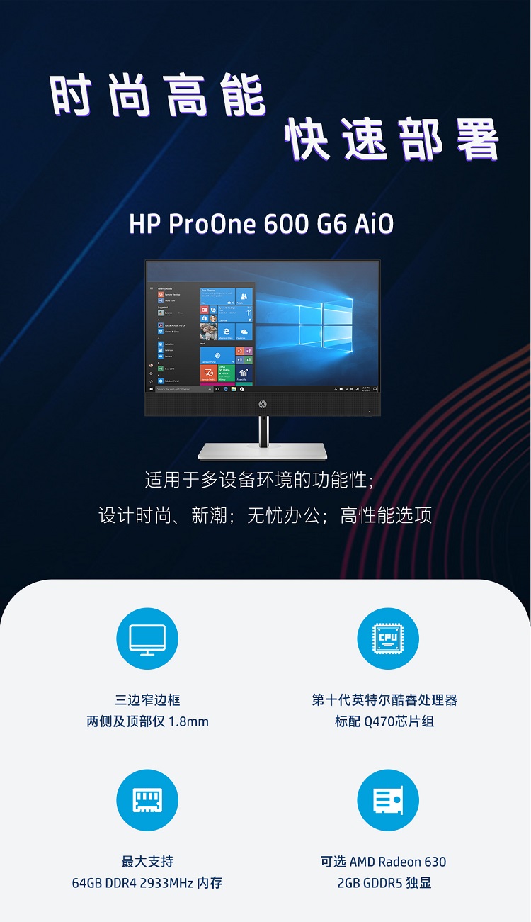 - 商品名称:HP ProOne 600 G6 21.5" Q370芯片组 独显一体机 i5 10500T 8G 机械硬盘 1T 2G独立显卡 硬盘保护、网络同传 21.5英寸液晶 DOS 原厂三年质保