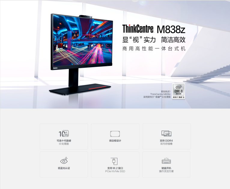商品名称:联想一体机ThinkCentre M838z-D217 (23.8LED i3-10100/8G/256GSSD/2G独显/三年原厂质保)