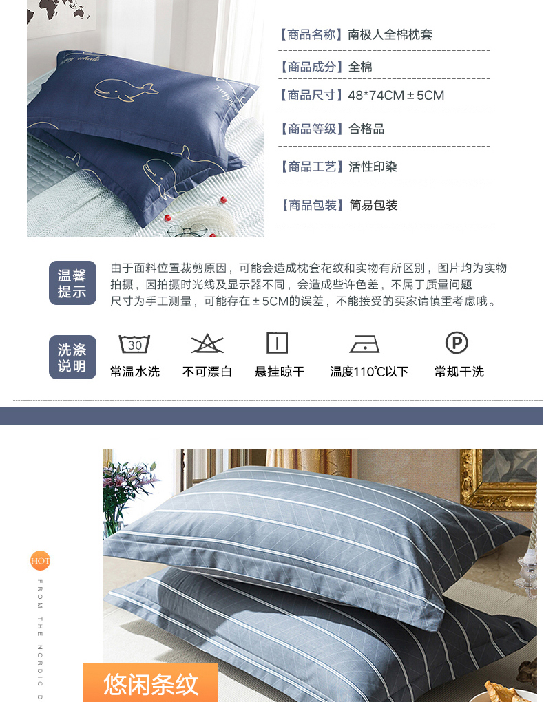 - 商品名称:南极人(NanJiren)枕套 纯棉枕芯套全棉枕头套 一对装 48*74cm