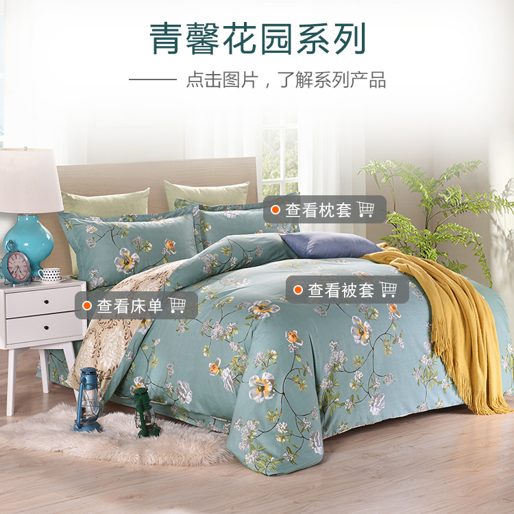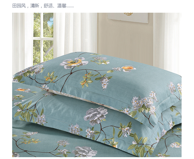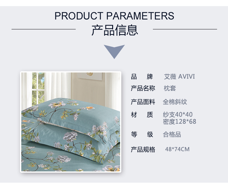 商品名称:艾薇 枕套家纺 全棉枕套 纯棉斜纹印花枕头套 一对装 青馨花园 48*74cm