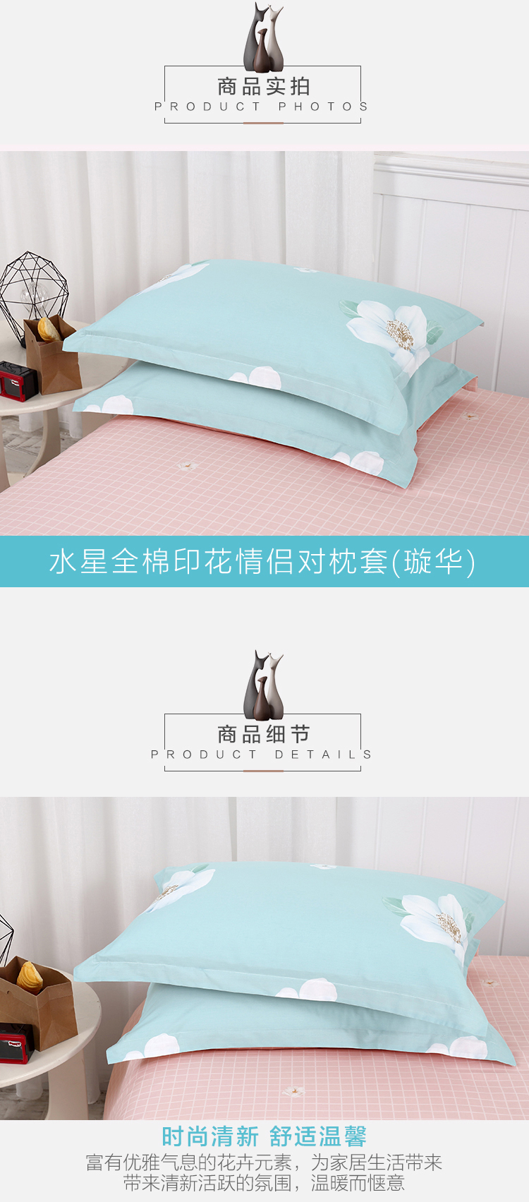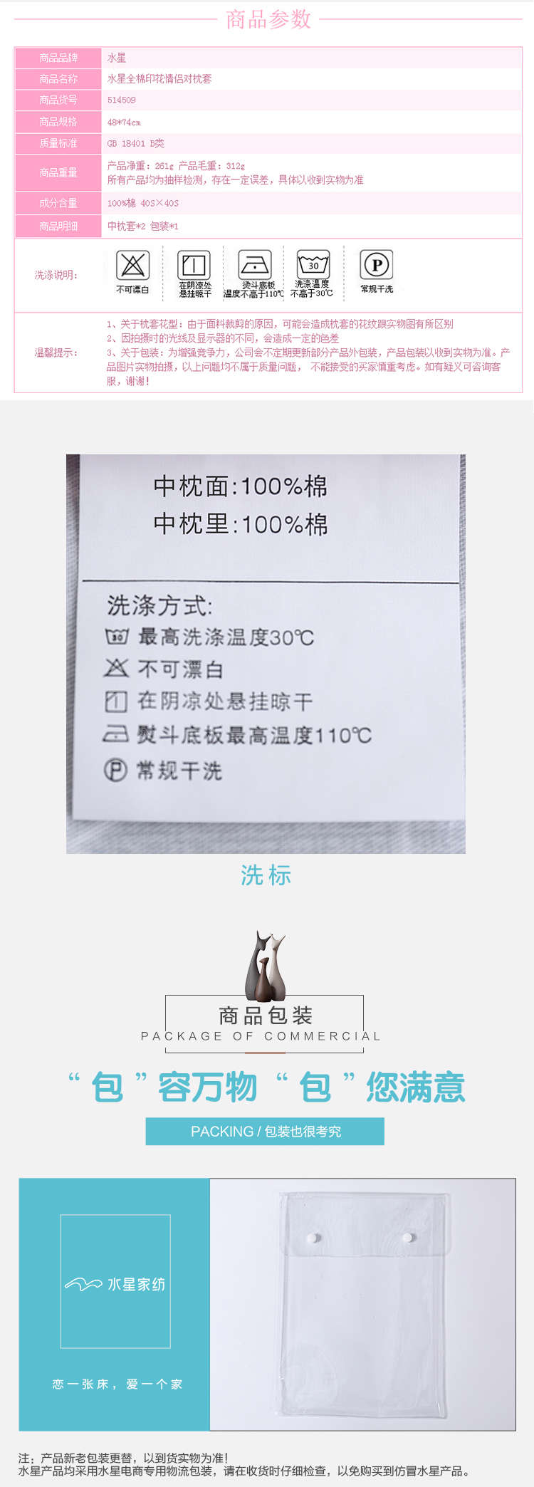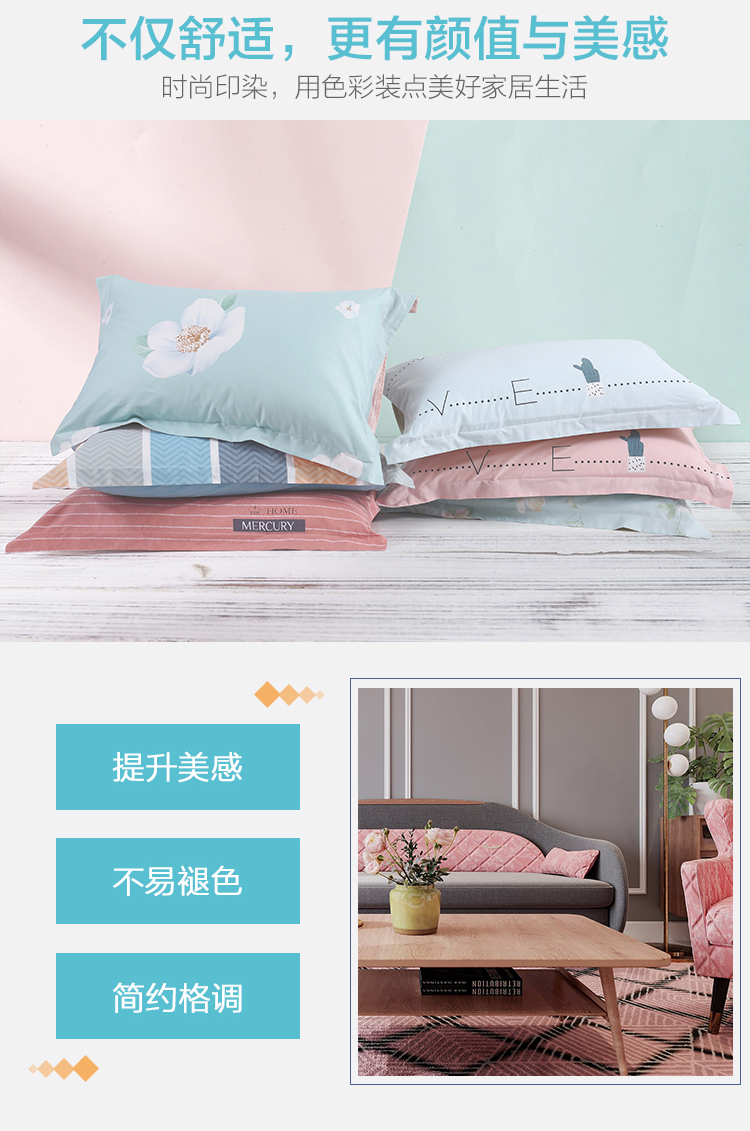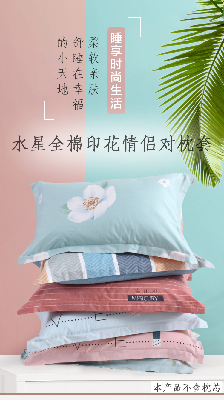 - 商品名称:水星家纺 全棉枕套单件 纯棉枕芯套全棉枕头套 情侣对枕套 一对装 48×74cm 璇华