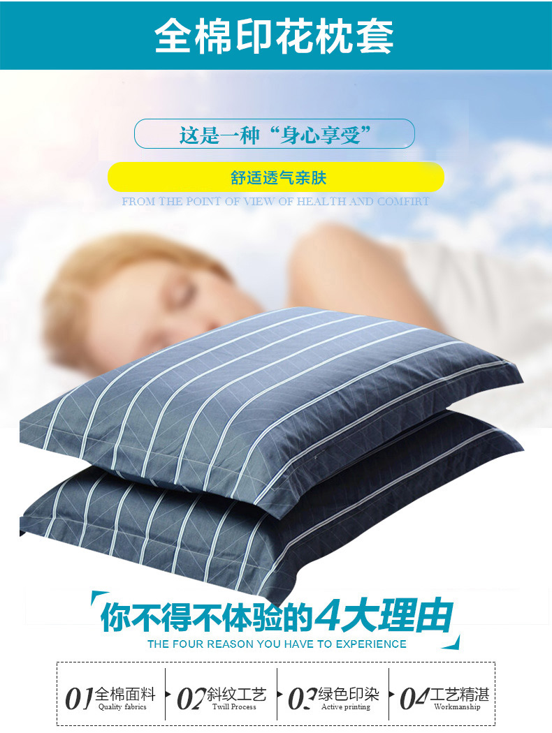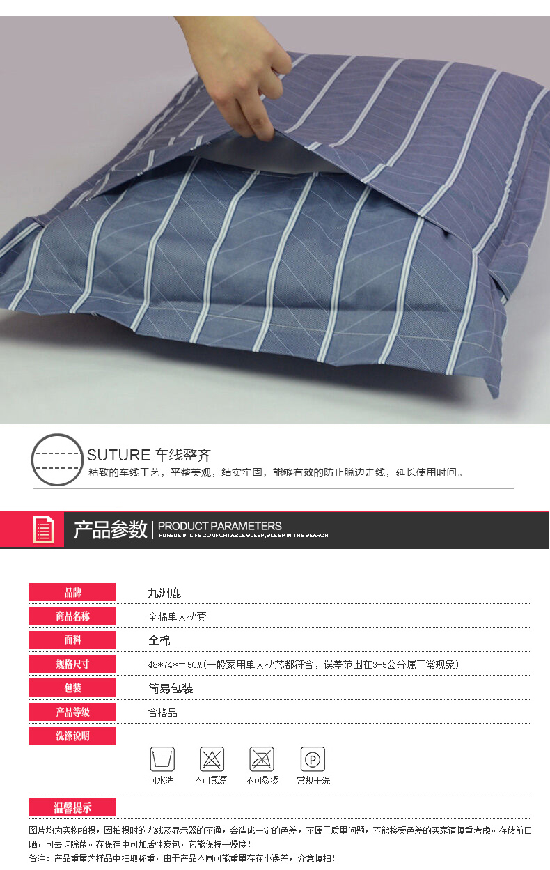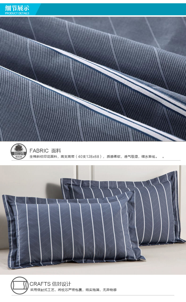 商品名称:【全棉枕套 一对装】九洲鹿 全棉斜纹枕套枕芯套纯棉学生宿舍枕头套48x74cm 格调A版 48x74cm通用尺寸