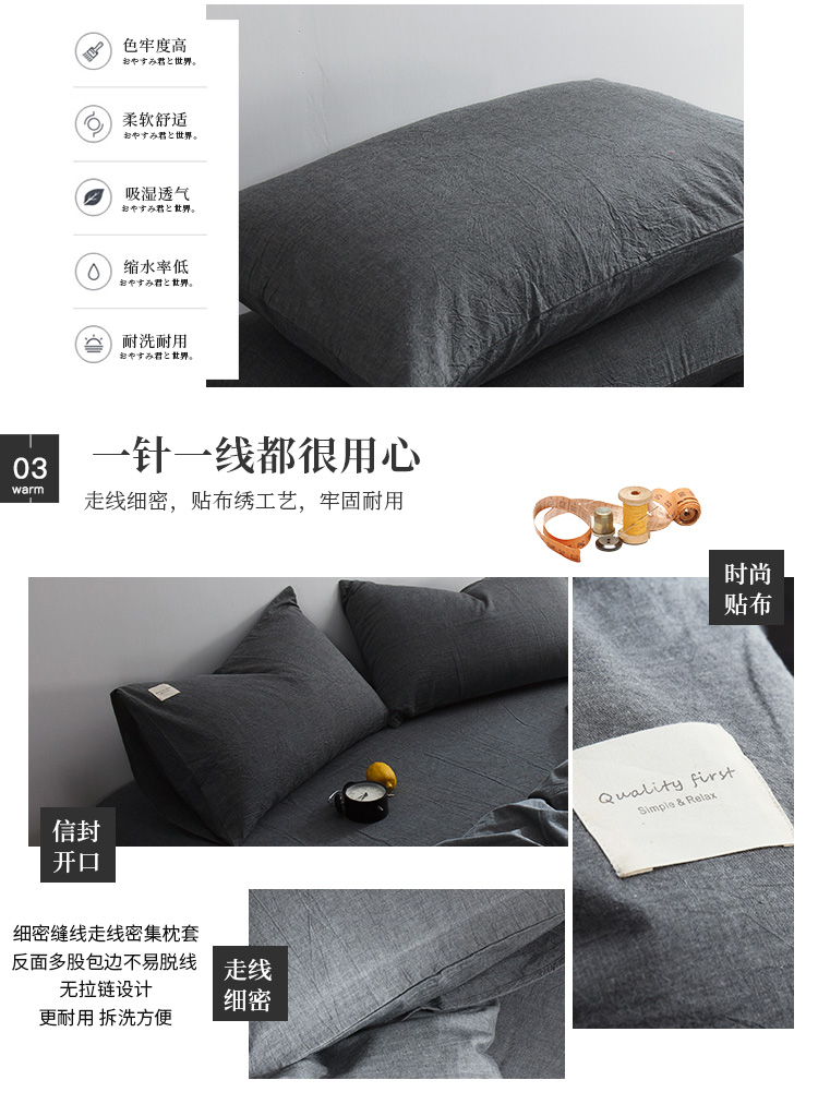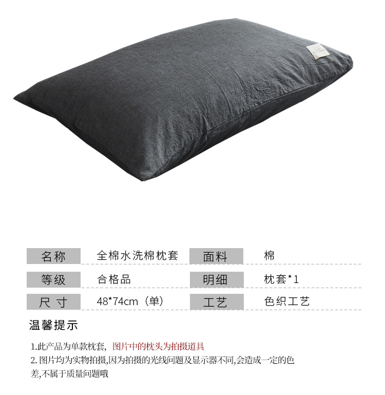 - 商品名称:北极绒 全棉枕套 纯棉枕头套色织水洗棉面包乳胶记忆枕套 全包枕芯枕巾枕头罩 低调灰 48*74cm一只装