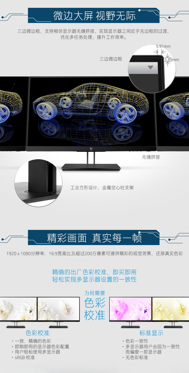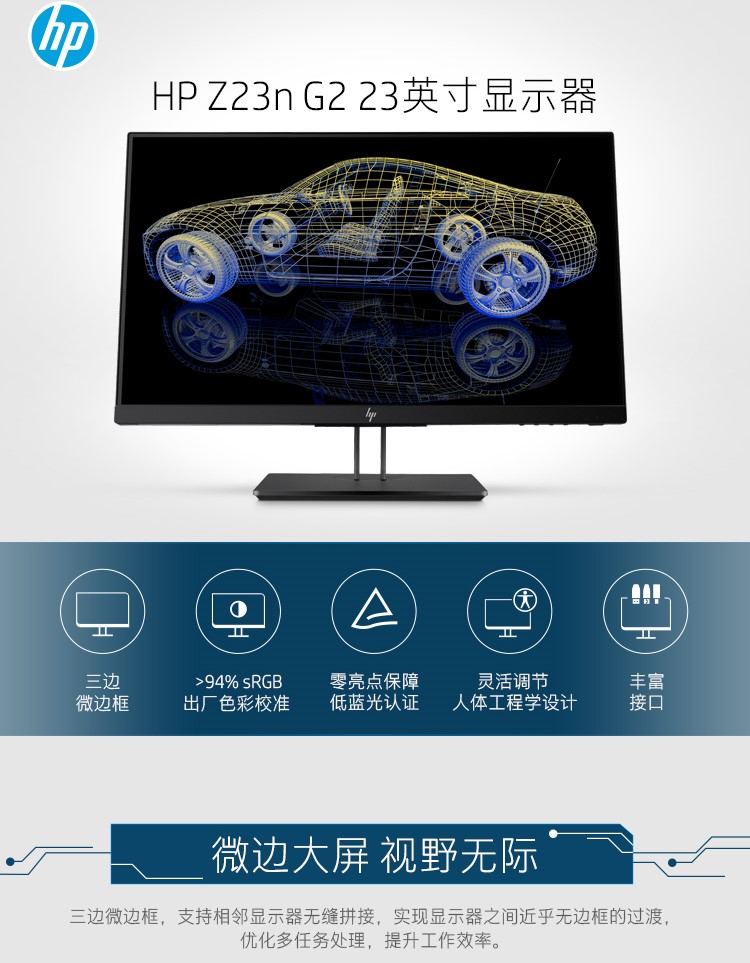 - 商品名称:惠普(HP)Z23n G2 23英寸工作站级显示器 微边框IPS屏 出厂色彩校准 升降旋转 无闪屏&无亮点 低蓝光显示器(1920*1080,DP+HDMI+VGA+USB,含DP和USB线缆)