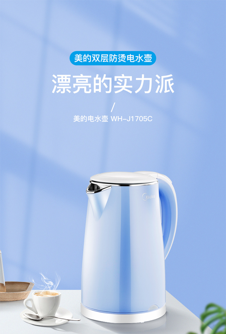 - 商品名称:美的(Midea)电水壶热水壶电热水壶304不锈钢1.7L容量高温暖水壶烧水壶开水壶WHJ1705C