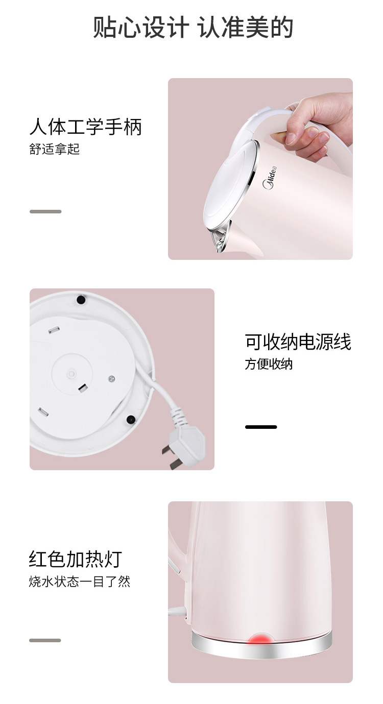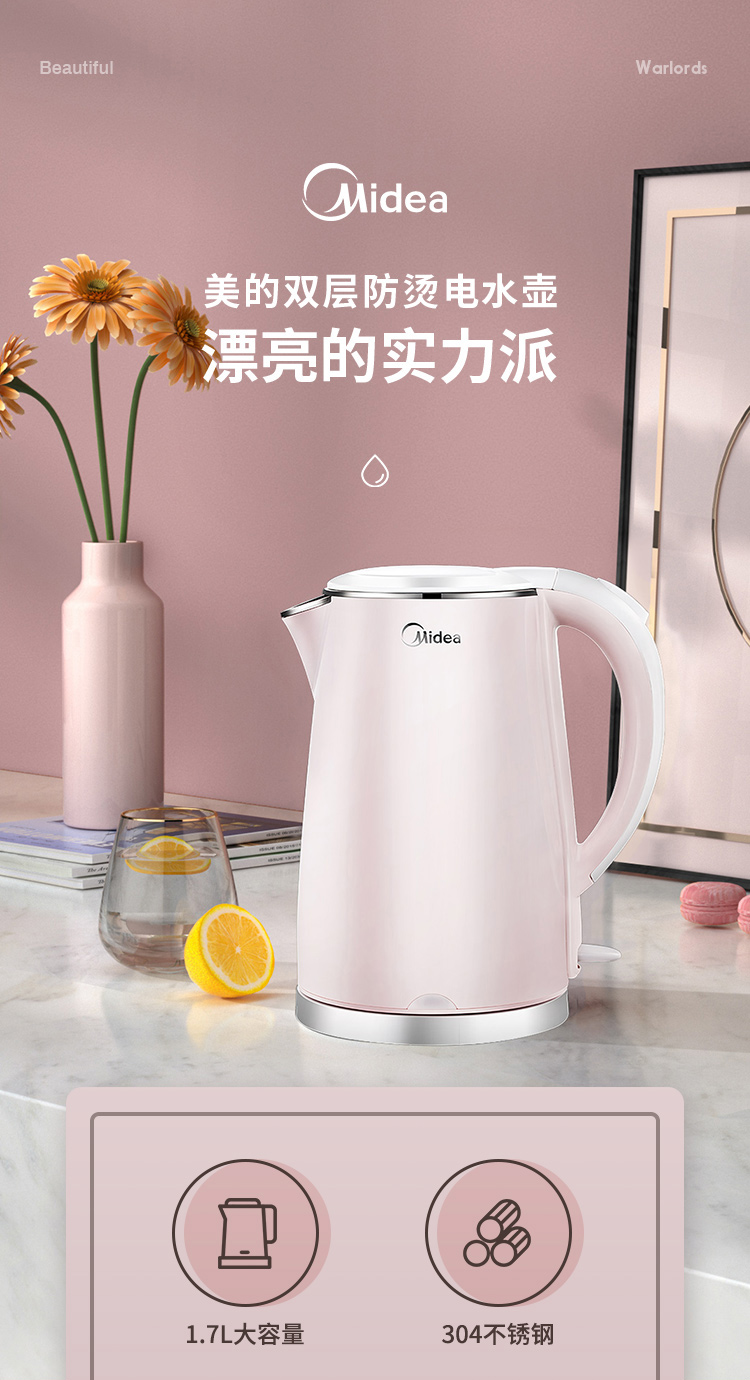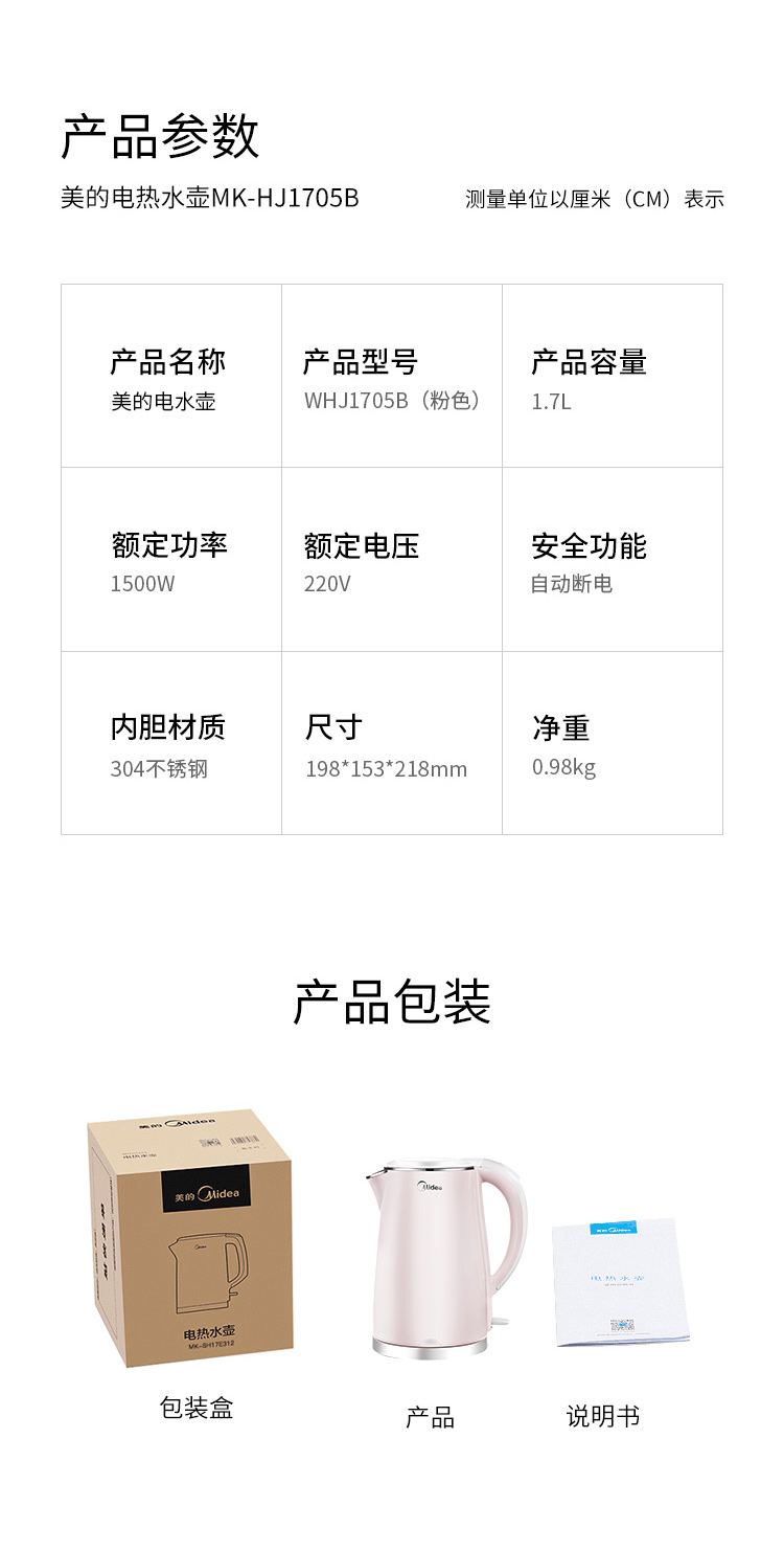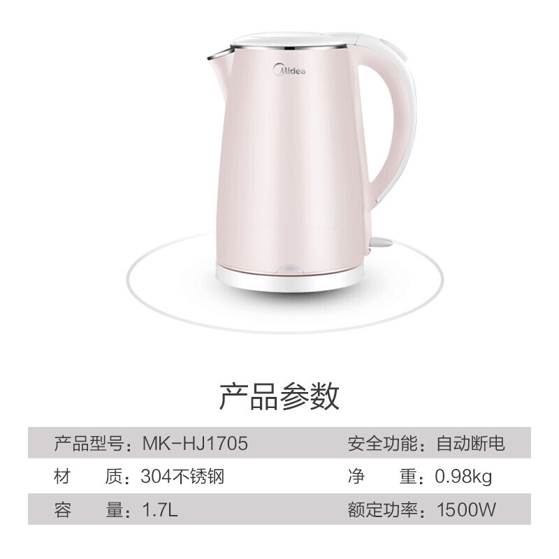 - 商品名称:美的(Midea)电水壶热水壶电热水壶304不锈钢1.7L容量暖水壶烧水壶开水壶WHJ1705b