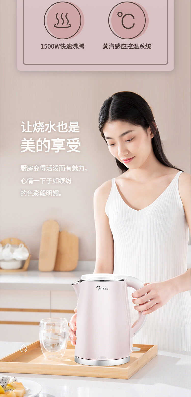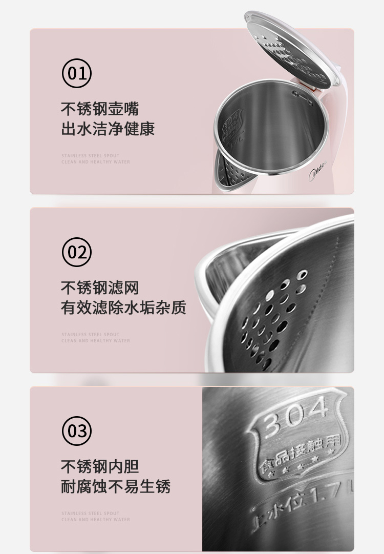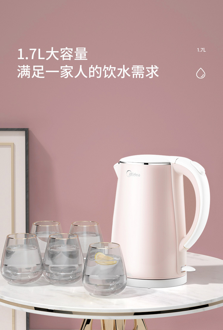 - 商品名称:美的(Midea)电水壶热水壶电热水壶304不锈钢1.7L容量暖水壶烧水壶开水壶WHJ1705b