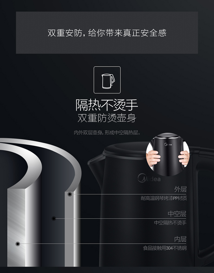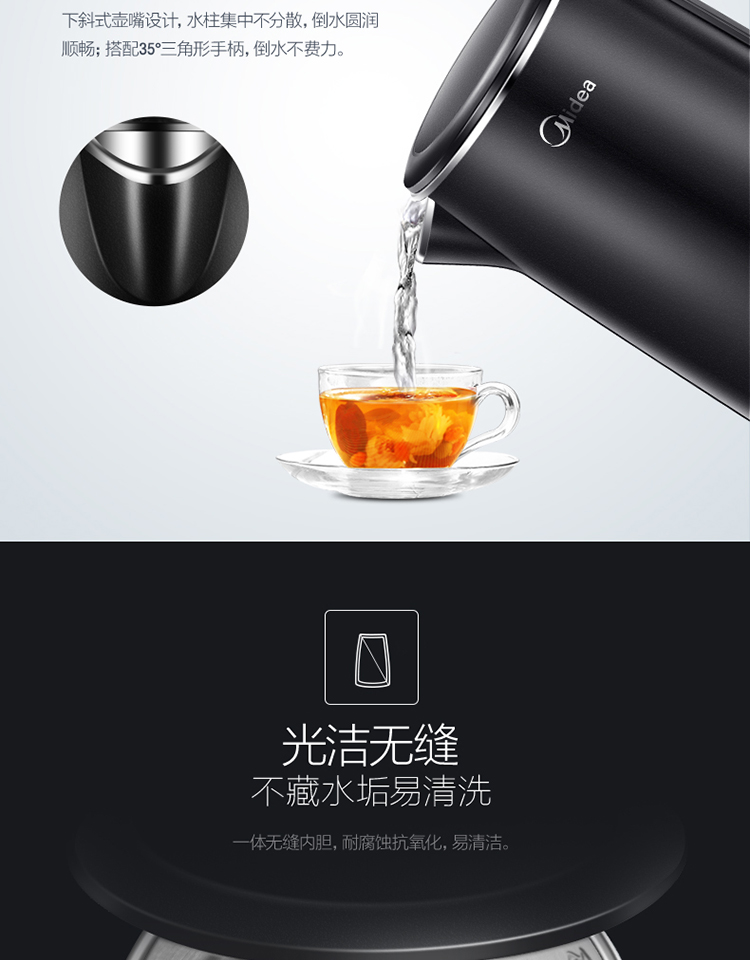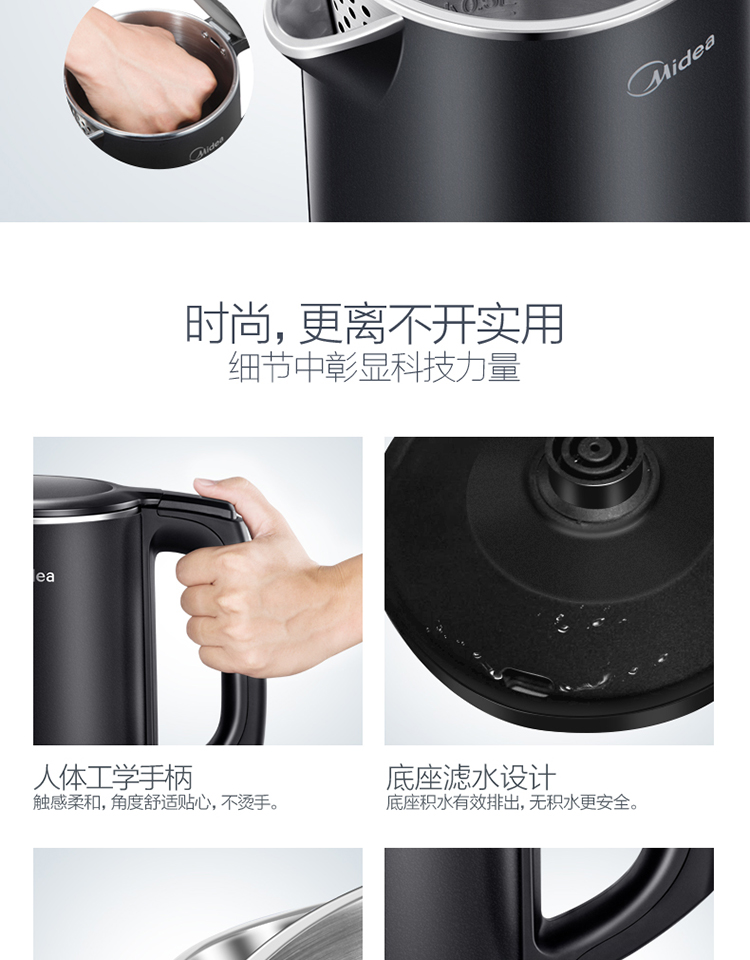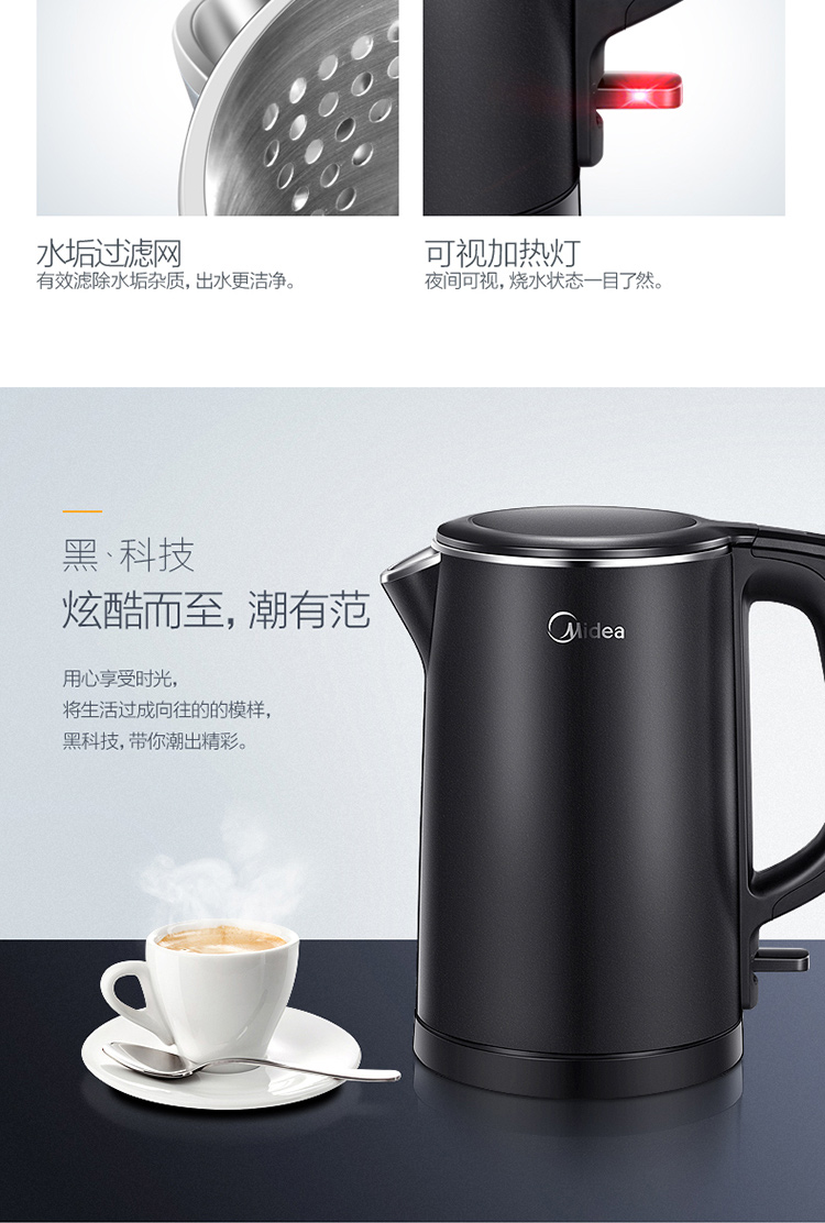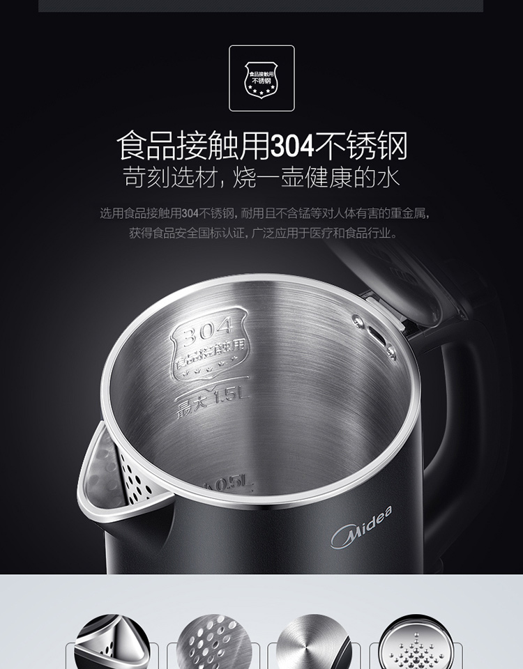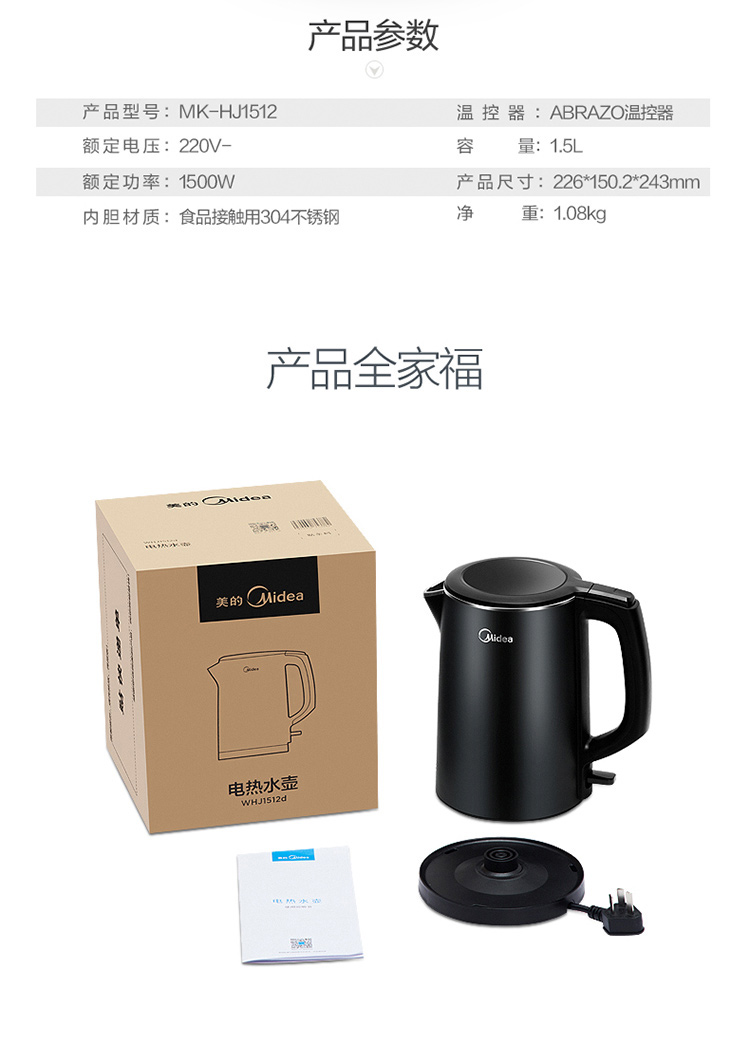 - 商品名称:美的(Midea)电水壶热水壶电热水壶304不锈钢水壶全钢无缝暖水壶开水壶烧水壶MK-HJ1512d