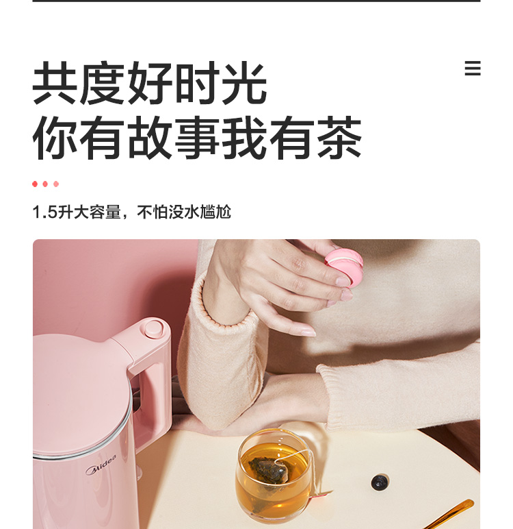 美的(Midea)电水壶热水壶恒温电热水壶304不锈钢1.5L容量双层防烫暖水壶烧水壶开水壶一键70度保温水壶E516