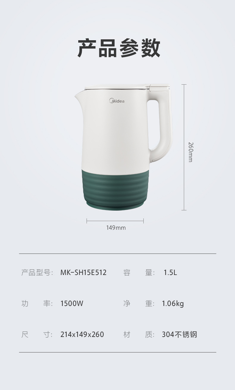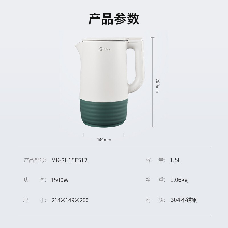 - 商品名称:美的(Midea)电水壶热水壶手柄控温304不锈钢烧水壶开水壶暖水壶MK-SH15E512