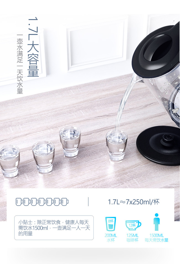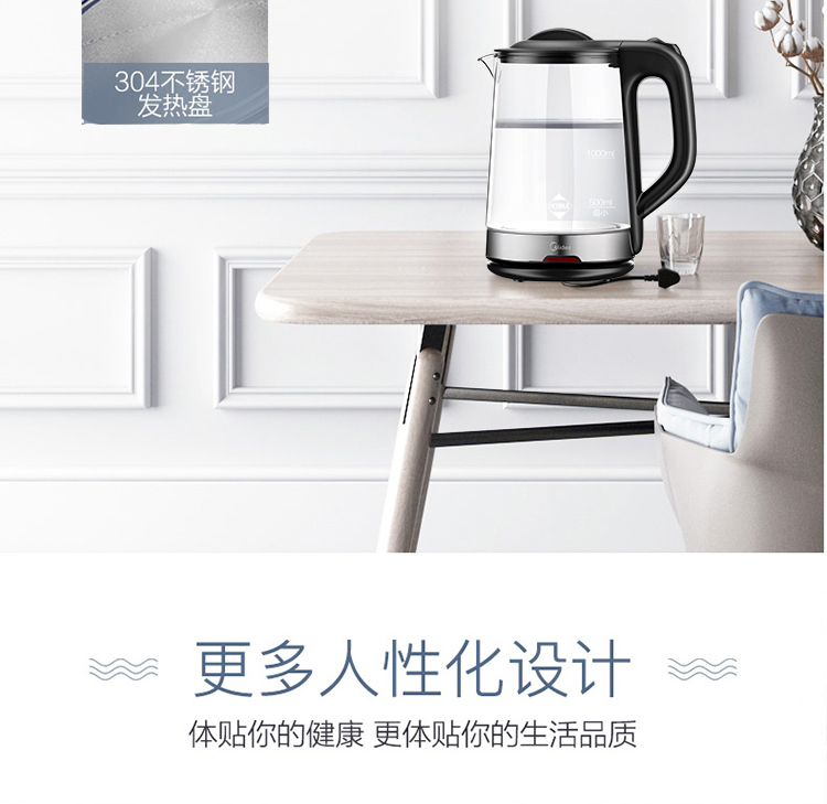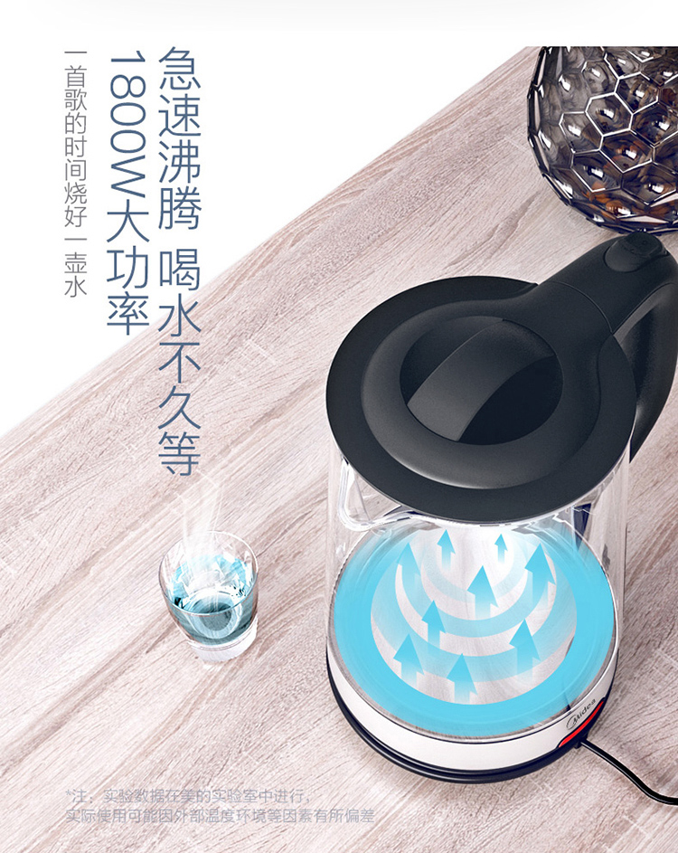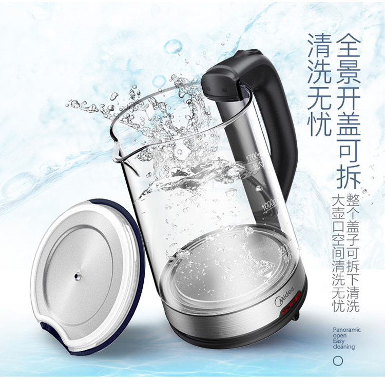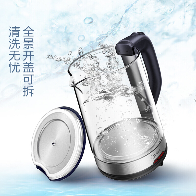 美的(Midea)电水壶热水壶电热水壶玻璃水壶高硼硅玻璃电水壶烧水壶MK-GJ1702
