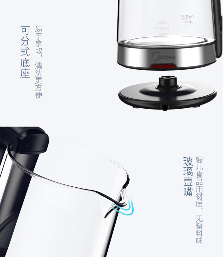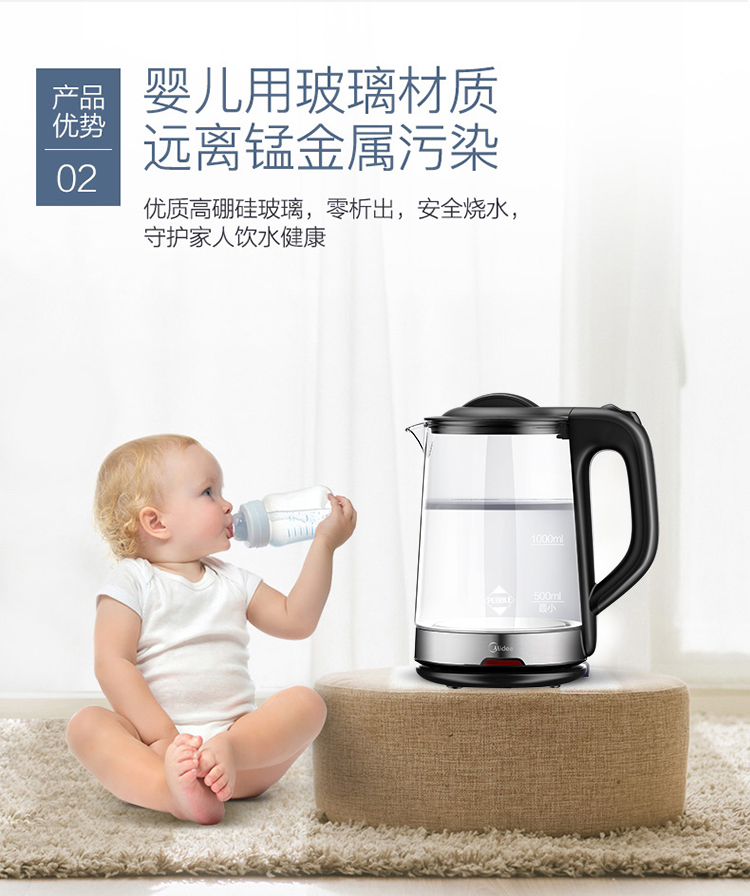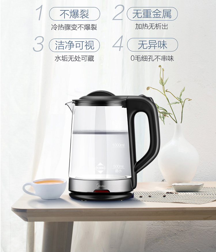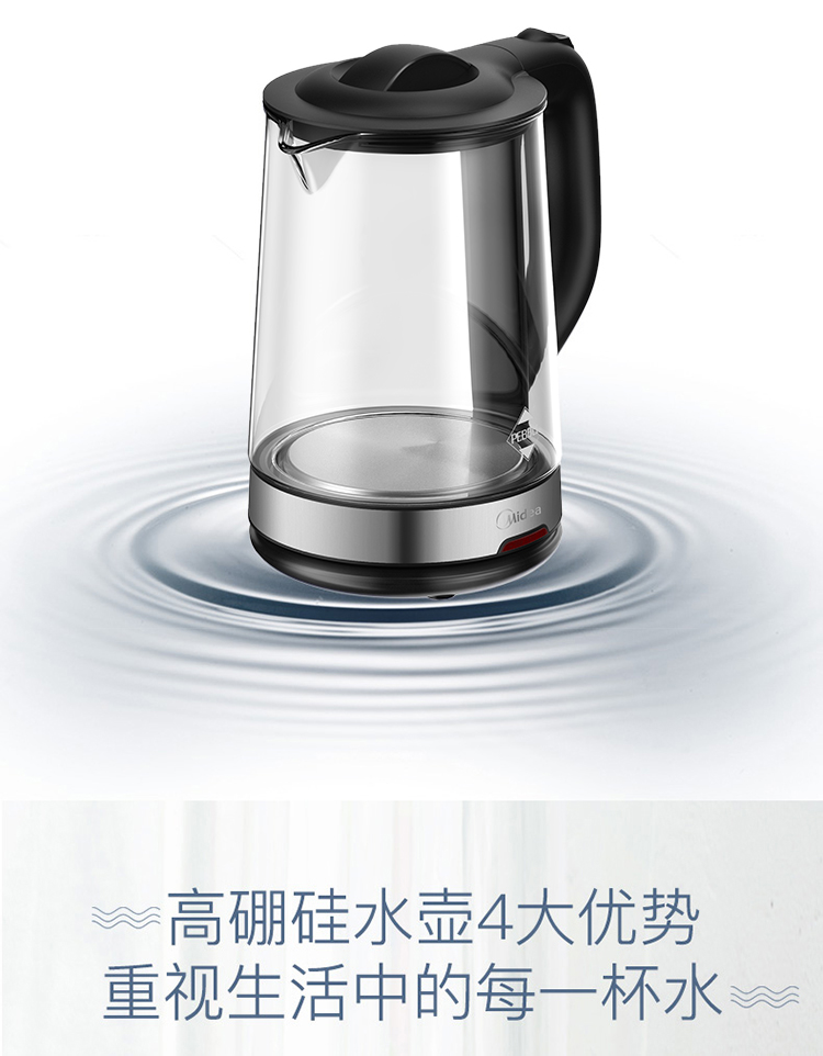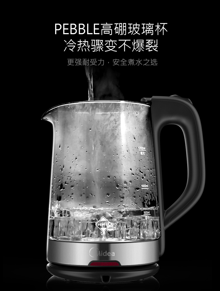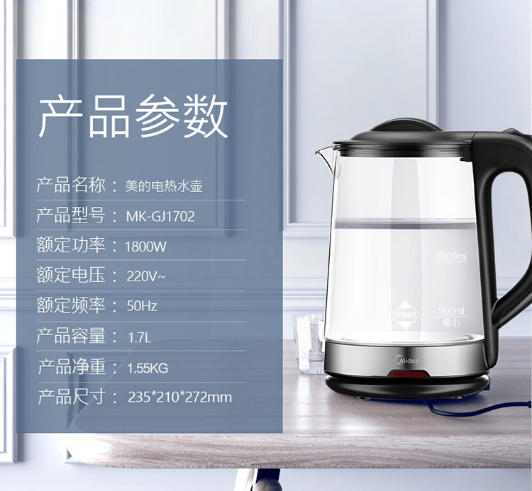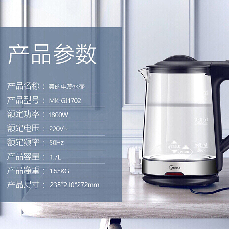 商品名称:美的(Midea)电水壶热水壶电热水壶玻璃水壶高硼硅玻璃电水壶烧水壶MK-GJ1702