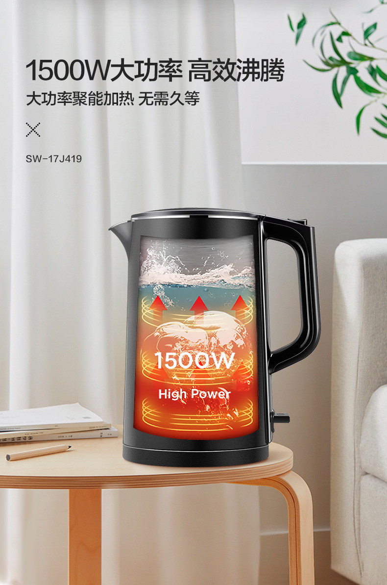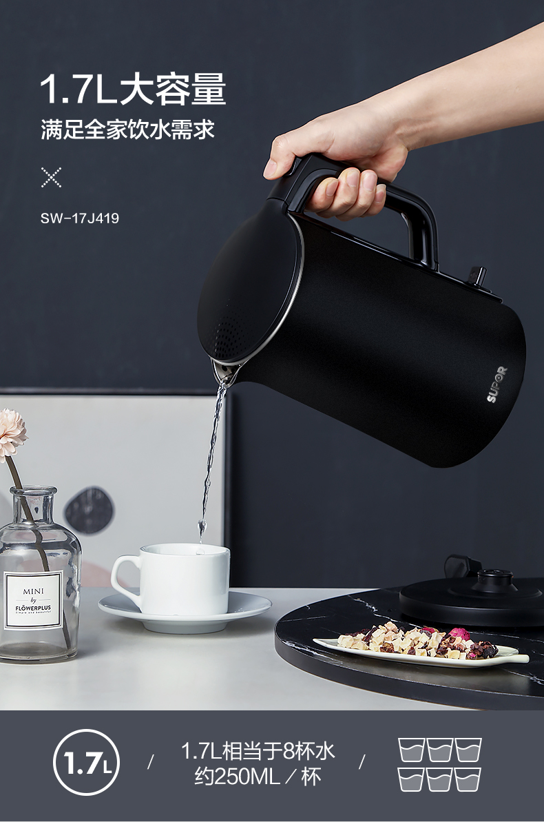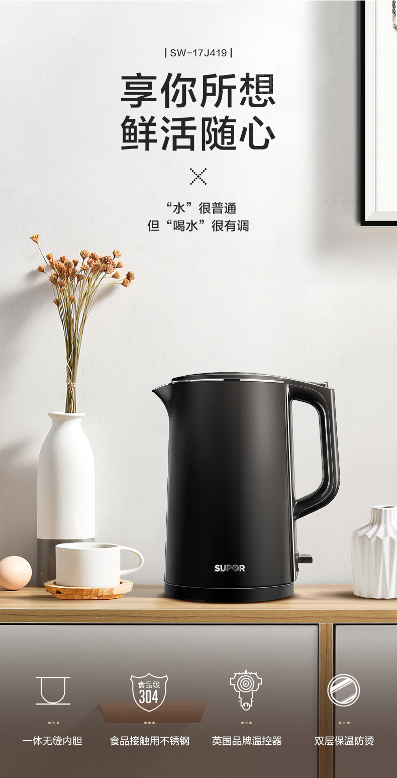 - 商品名称:苏泊尔(SUPOR)电水壶 双层防烫烧水壶热水壶 全钢无缝内胆电热水壶SW-17J419 1.7L大容量