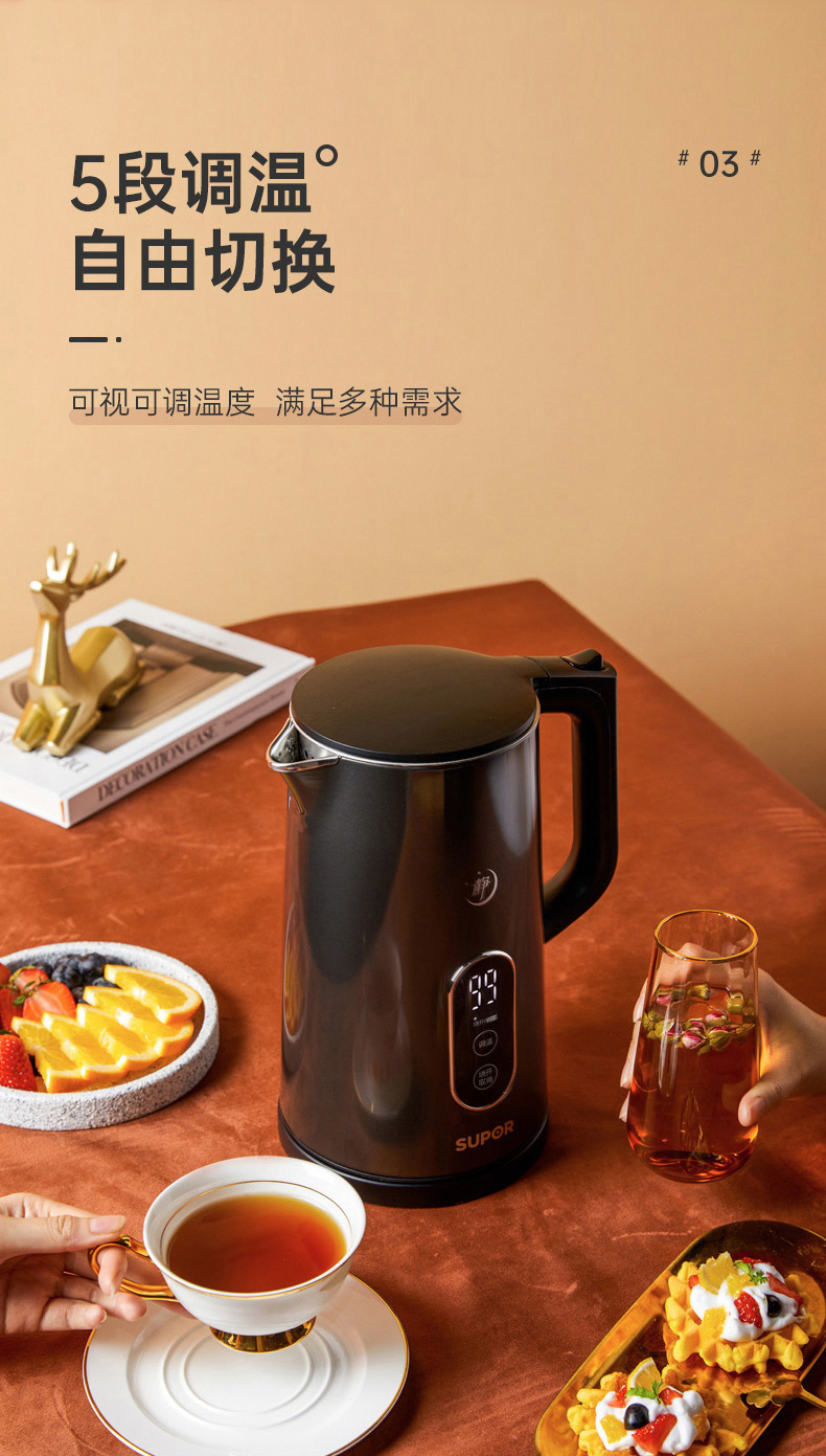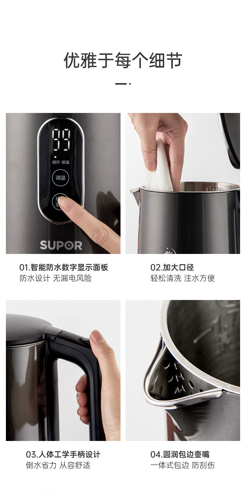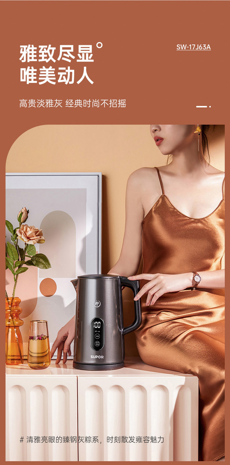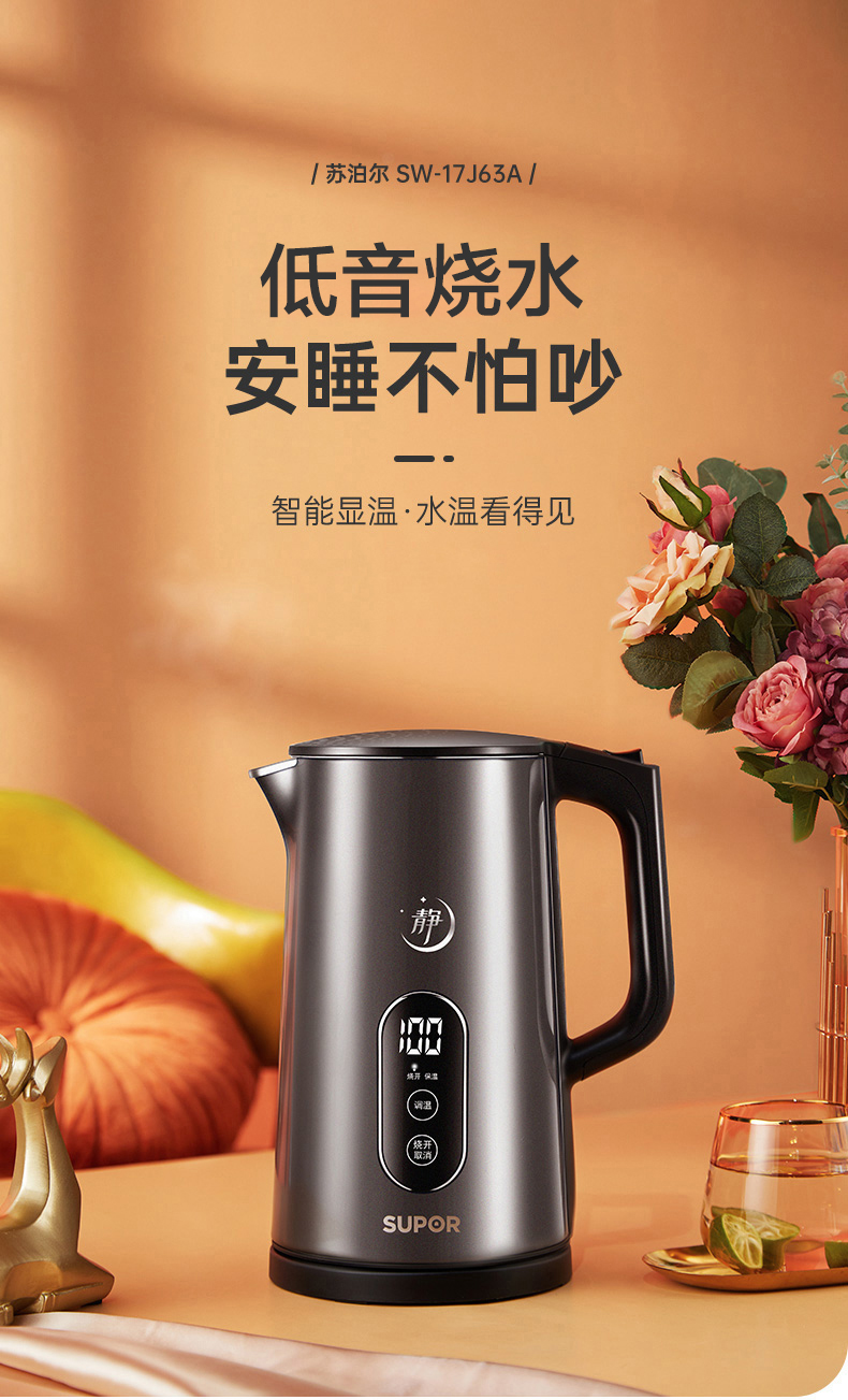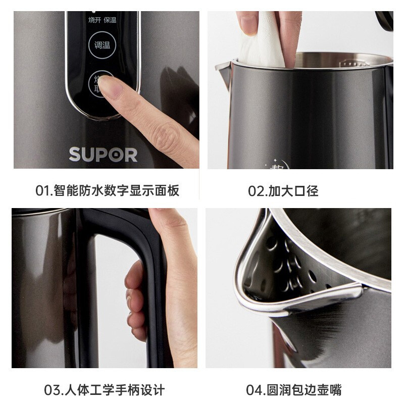 苏泊尔(SUPOR)电热水壶 1.7L大容量 触控调温低音烧水 壶身实时显温 养生 食品级不锈钢电水壶SW-17J63A