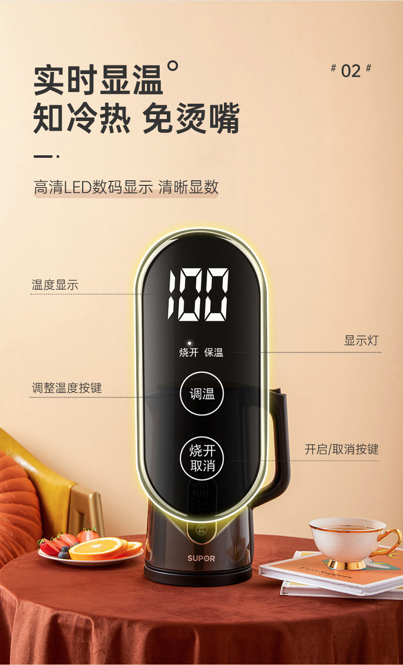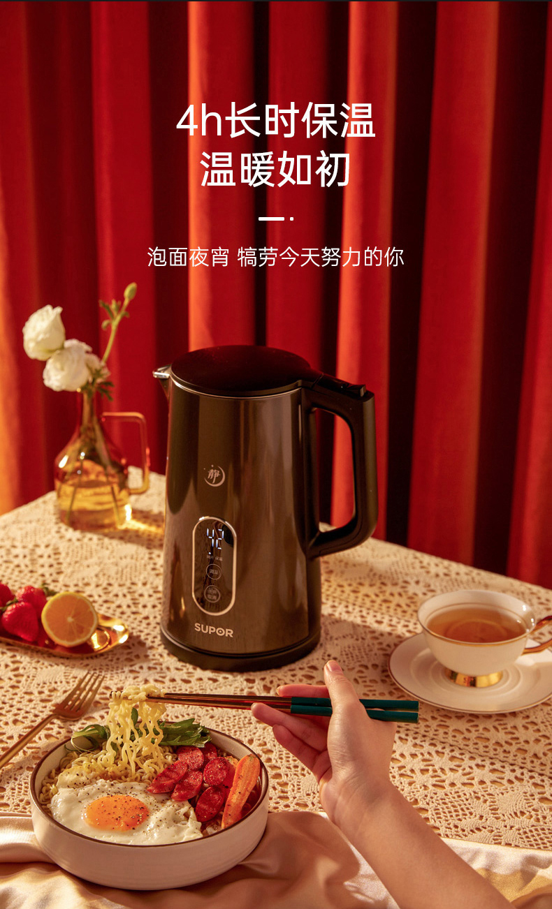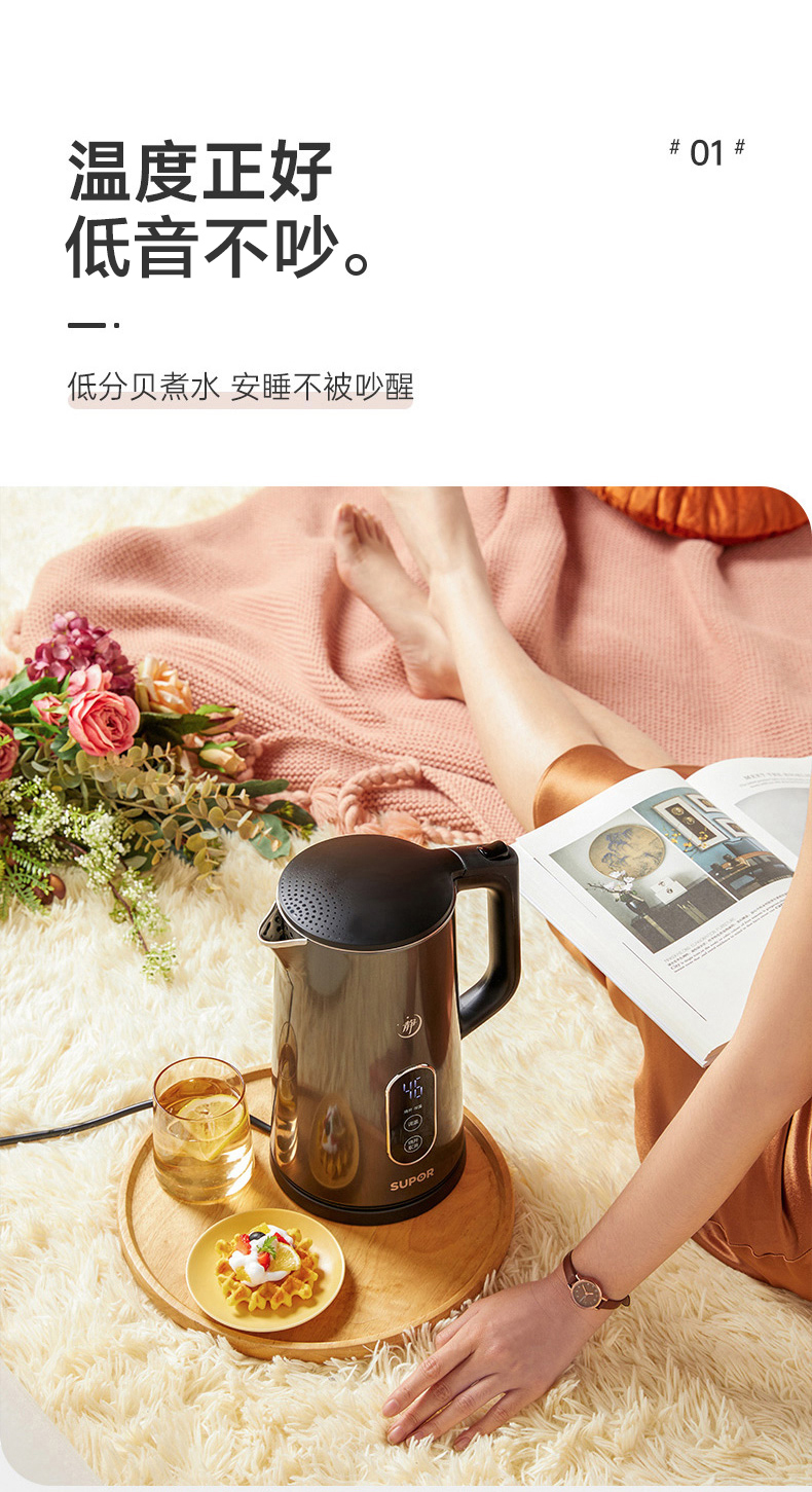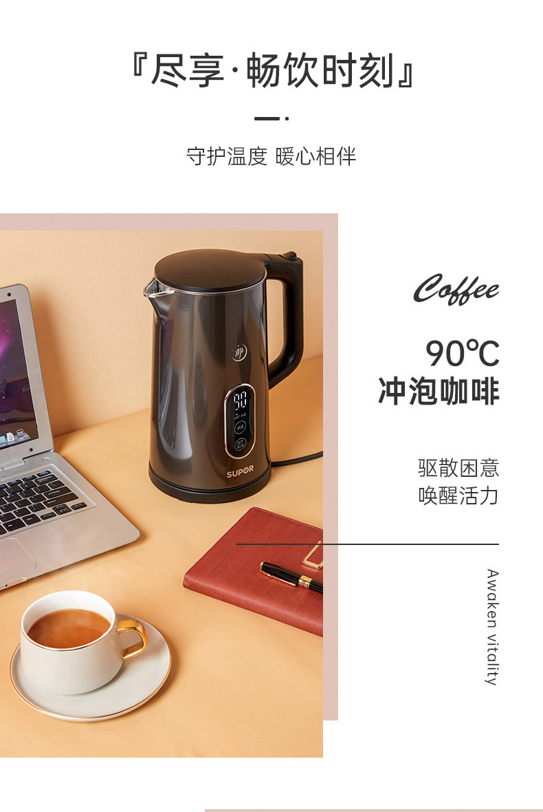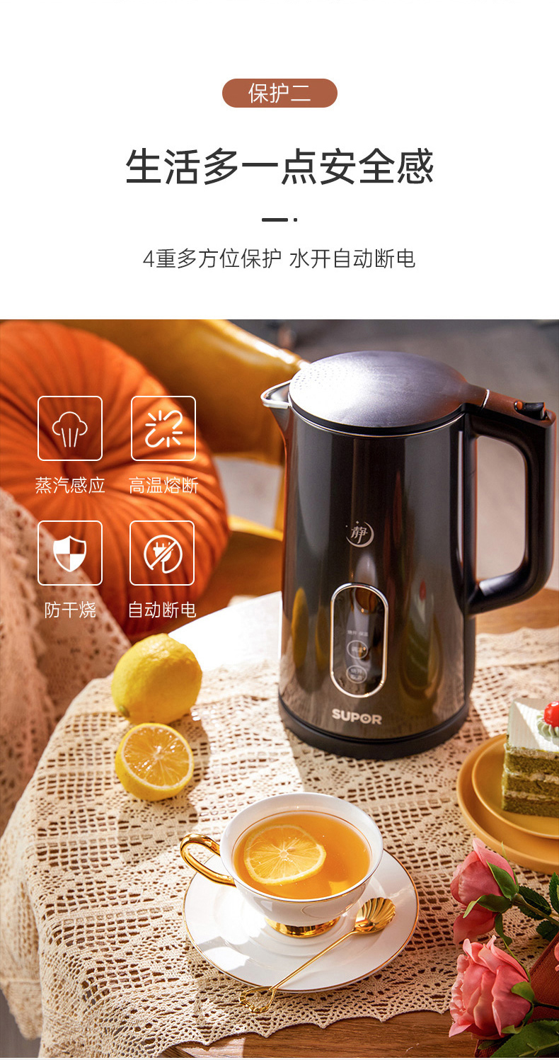 苏泊尔(SUPOR)电热水壶 1.7L大容量 触控调温低音烧水 壶身实时显温 养生 食品级不锈钢电水壶SW-17J63A