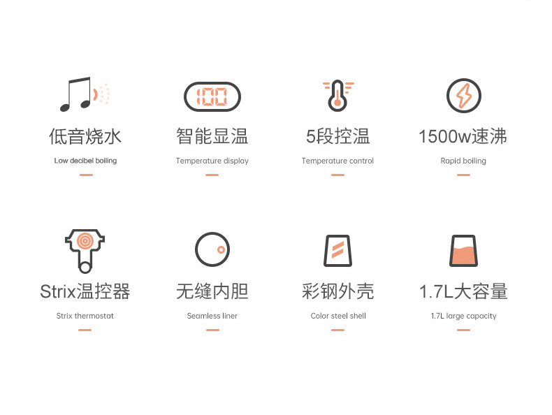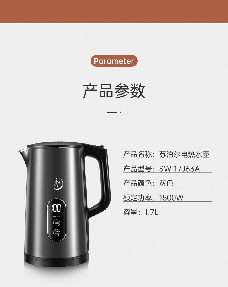 商品名称:苏泊尔(SUPOR)电热水壶 1.7L大容量 触控调温低音烧水 壶身实时显温 养生 食品级不锈钢电水壶SW-17J63A