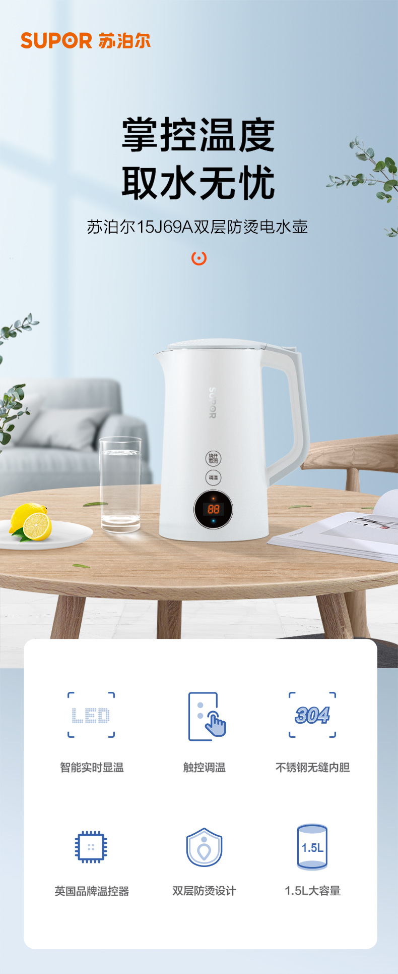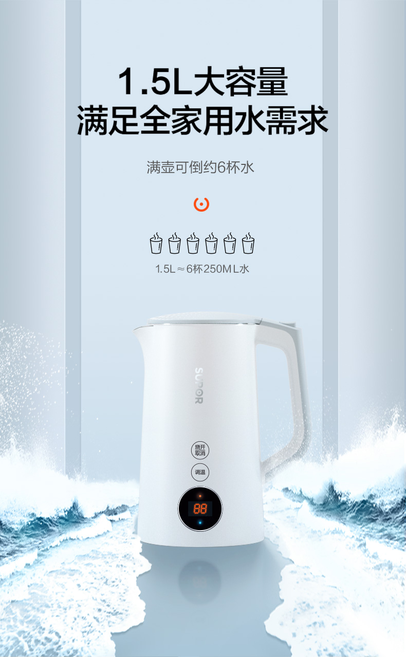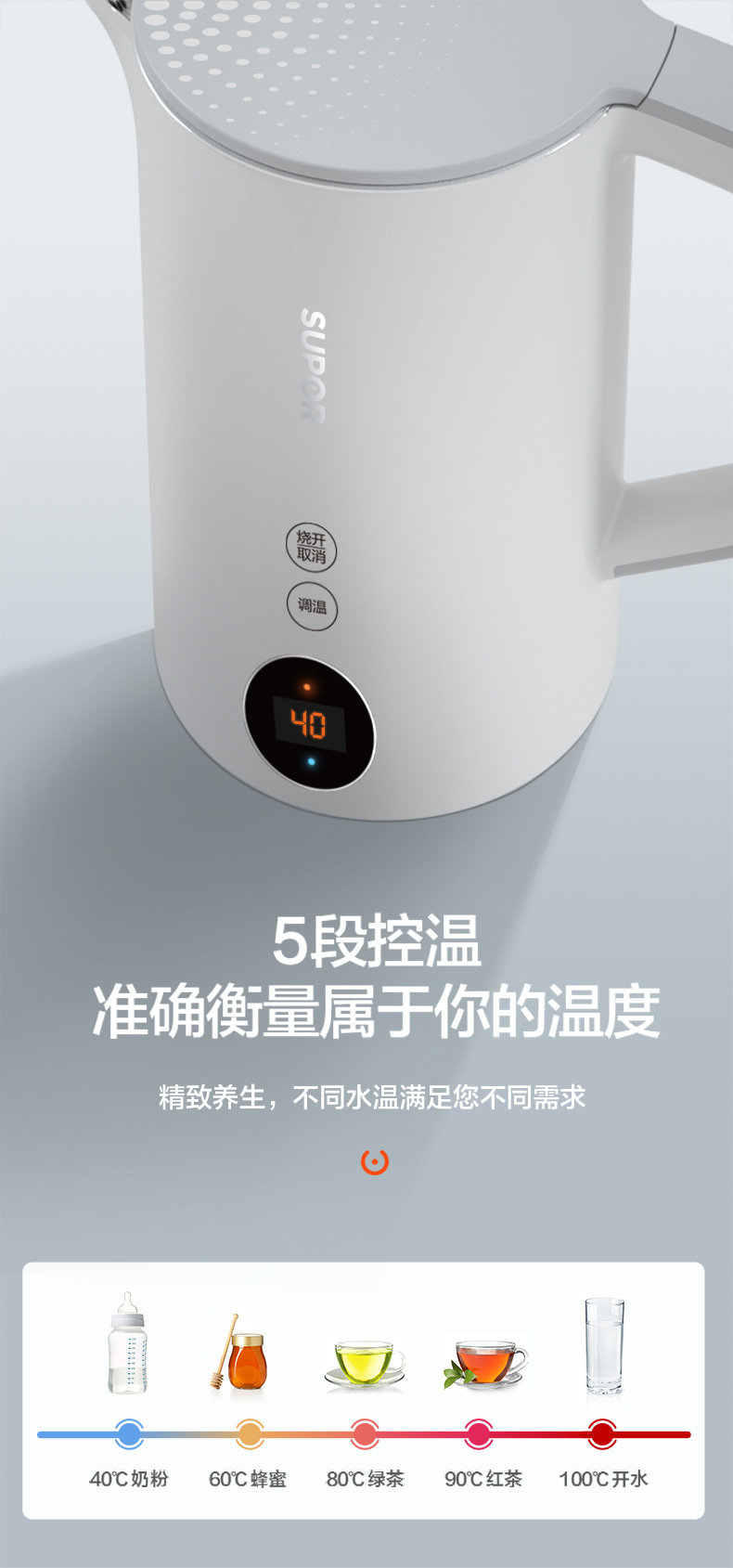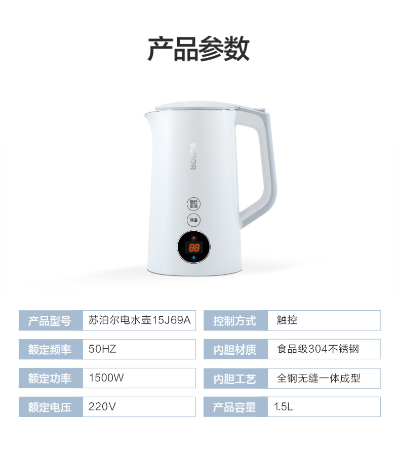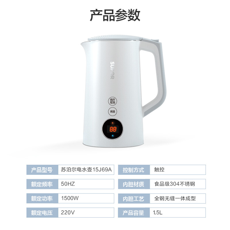 - 商品名称:苏泊尔(SUPOR)电热水壶 多段调温烧水壶 304不锈钢保温煮水壶开水壶 养生 显温SW-15J69A