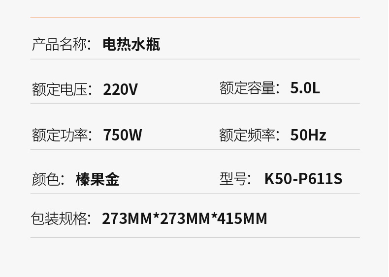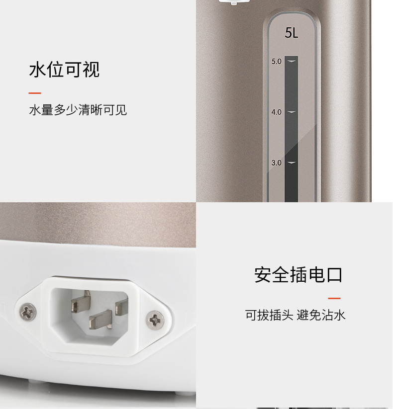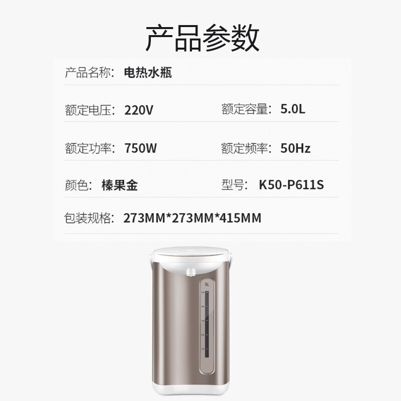 - 商品名称:九阳 Joyoung 电热水瓶热水壶 四段调温 5L 便捷清洗 可拆卸上盖 家用电水壶烧水壶 K50-P611S
