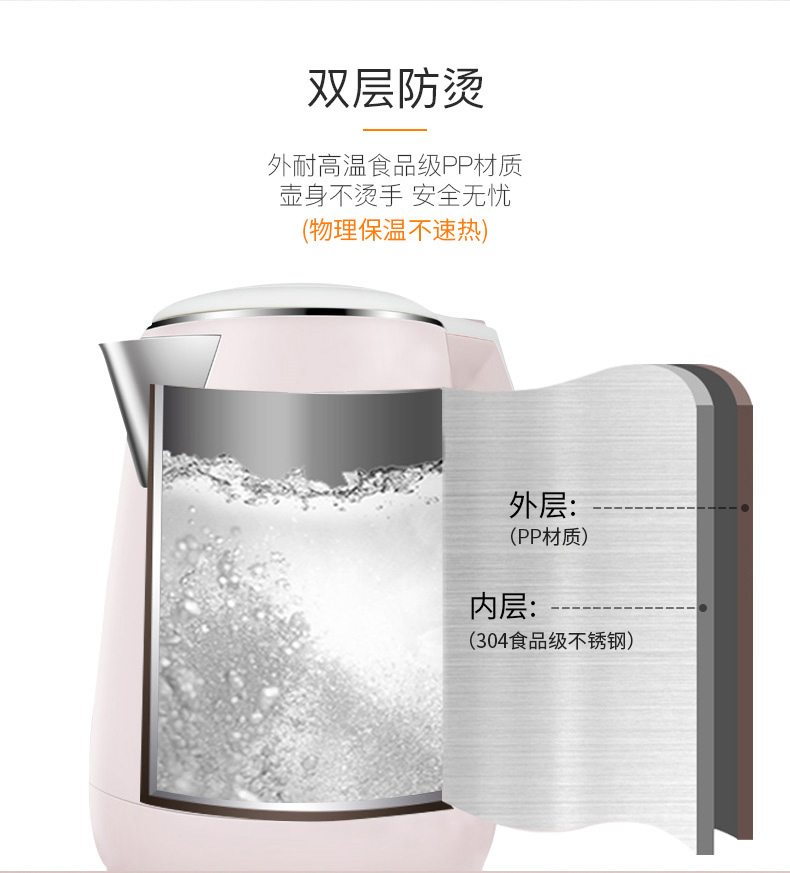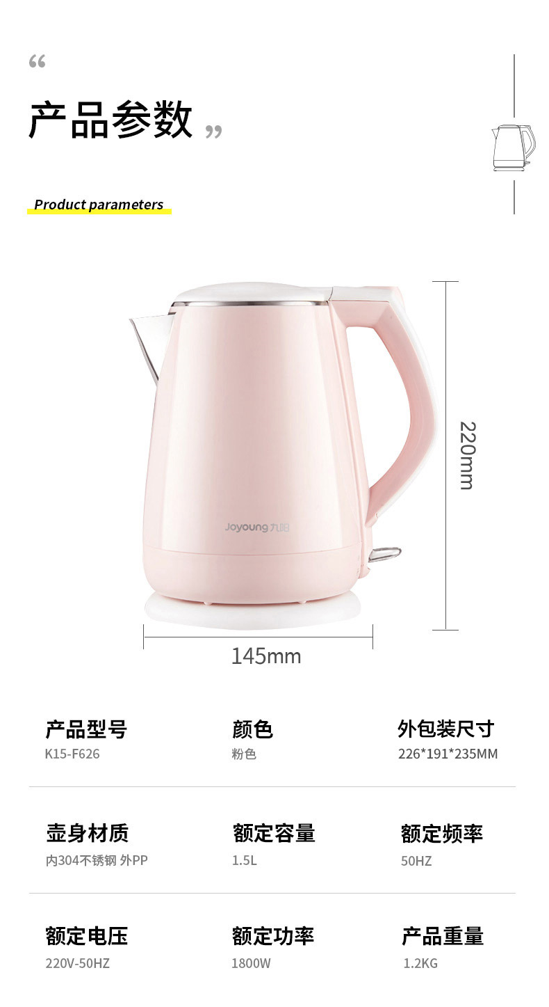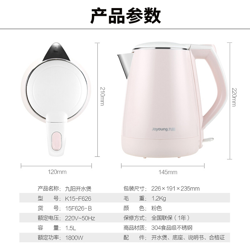 - 商品名称:九阳(Joyoung)热水壶烧水壶电水壶 双层防烫304不锈钢 家用大容量电热水壶 K15-F626