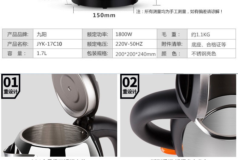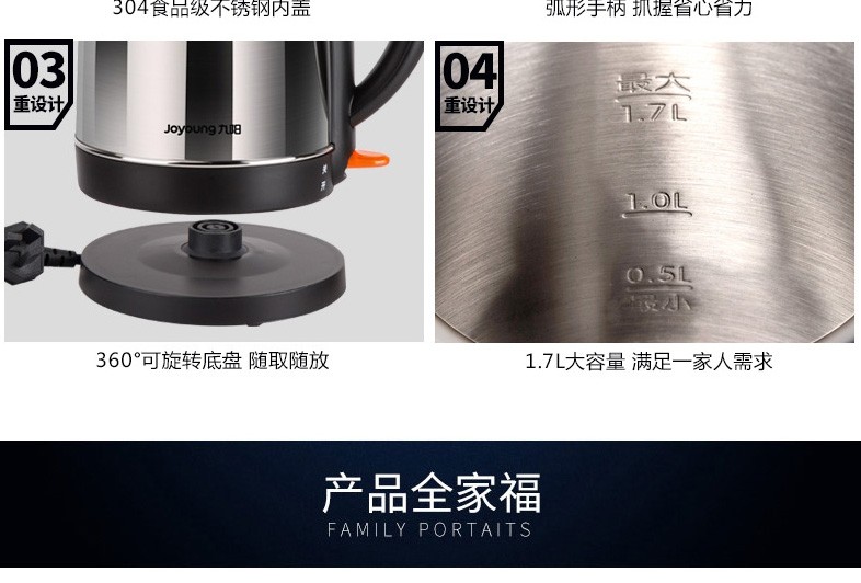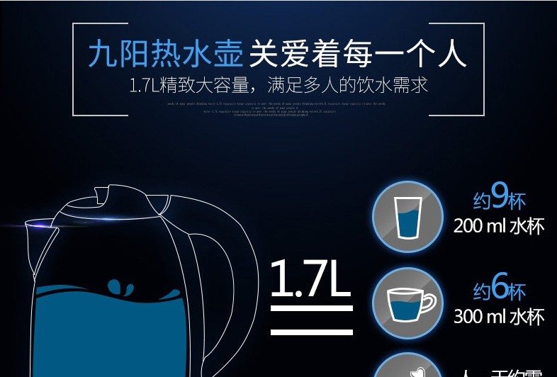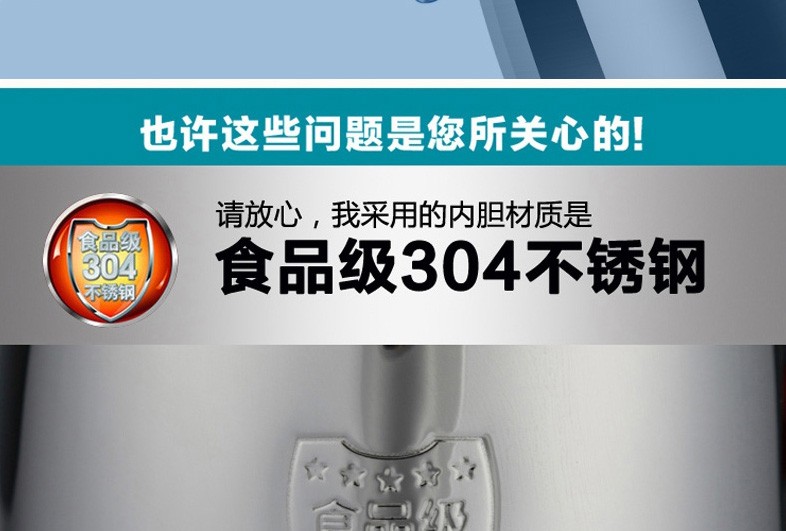 - 商品名称:九阳(Joyoung)热水壶 烧水壶 电水壶 304不锈钢开水煲 家用大容量 电热水壶自动断电 F23(蓝色)