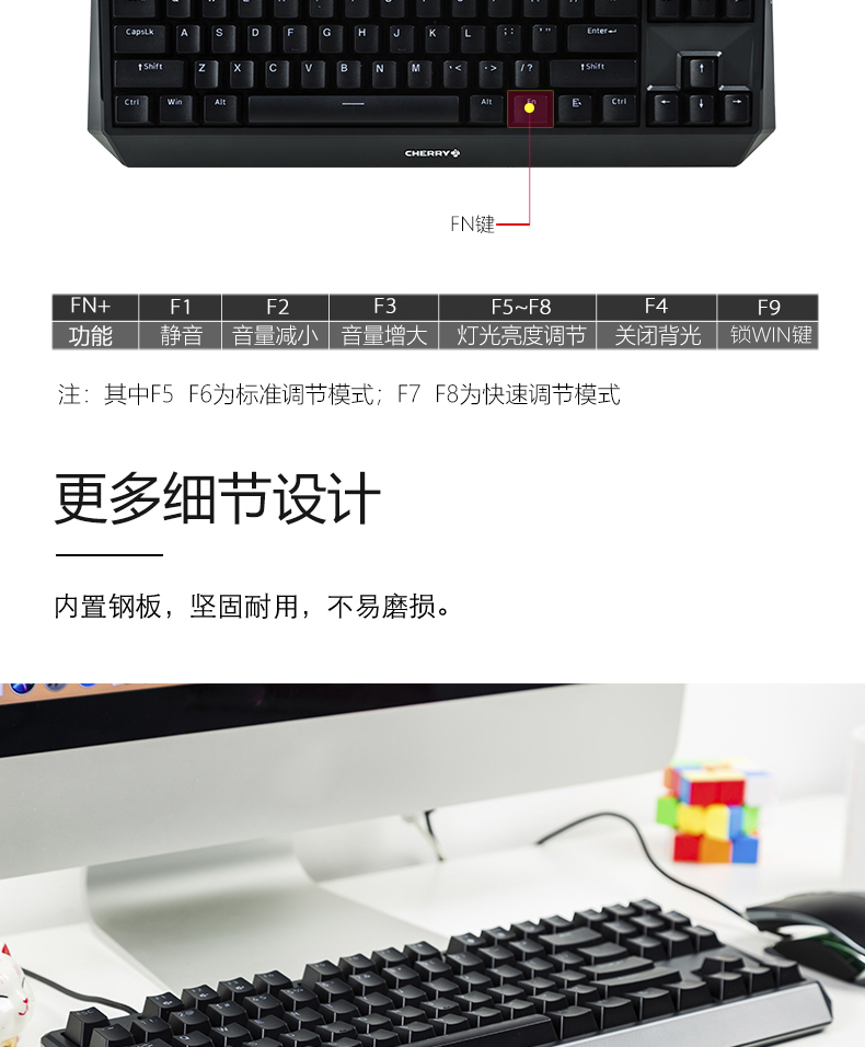 樱桃(Cherry)MX1.0 TKL G80-3810LXAEU-0机械键盘 有线键盘 游戏键盘 87键机械键盘 白色 茶轴