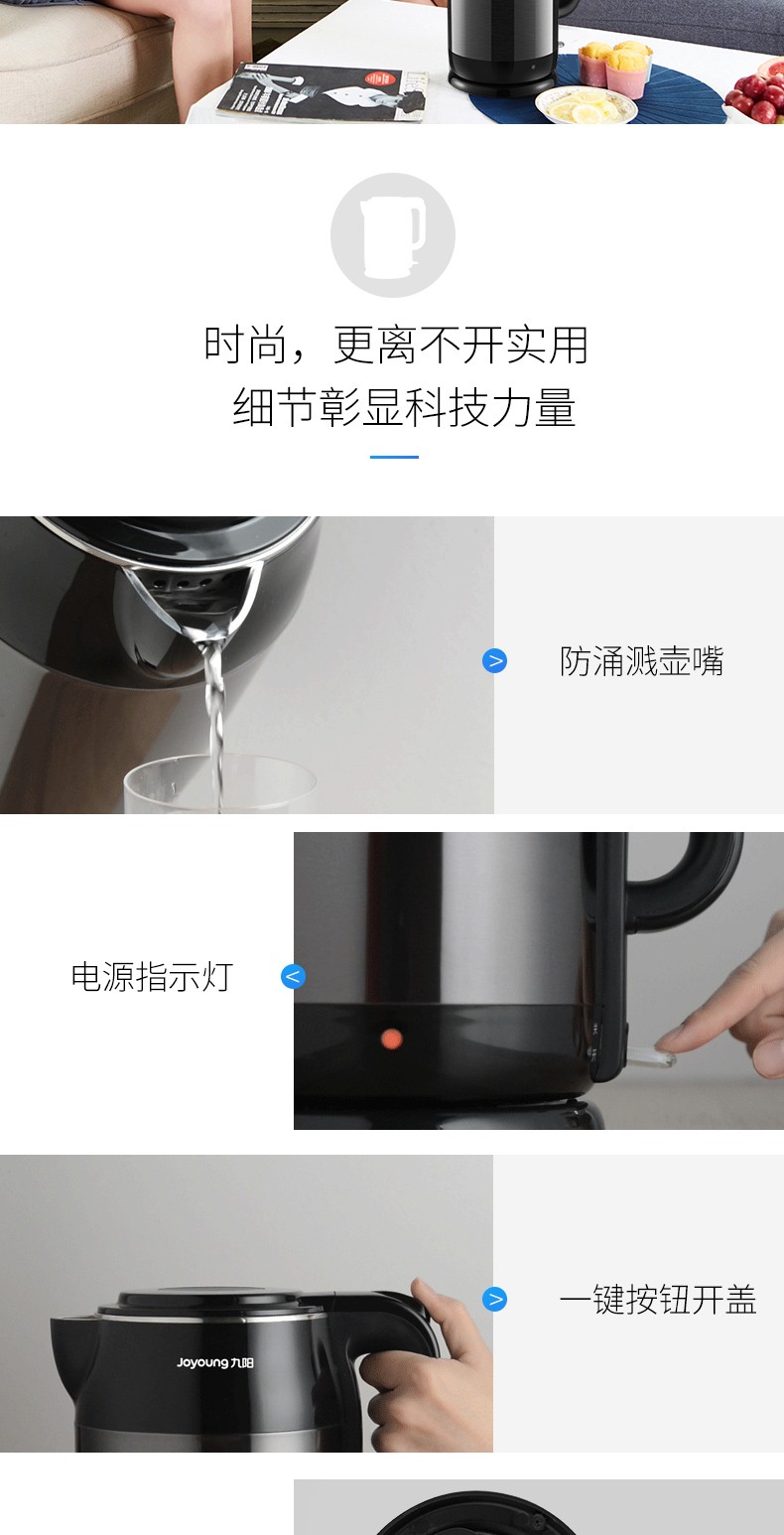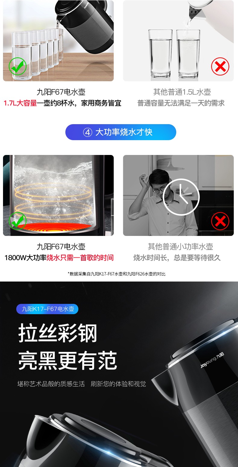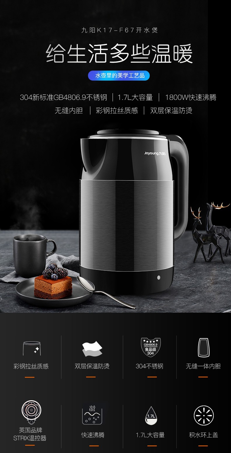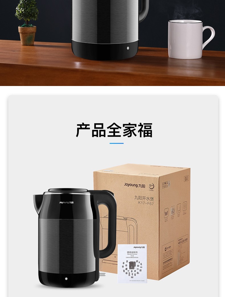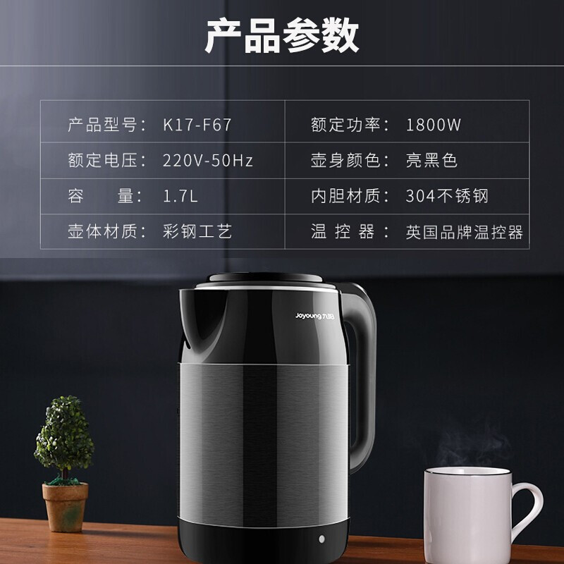 - 商品名称:九阳(Joyoung)电水壶双层防烫烧水壶1.7L大容量304不锈钢电热水壶K17-F67 黑色