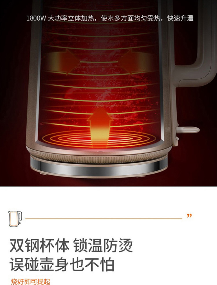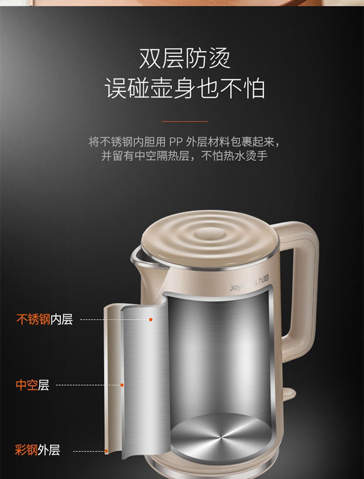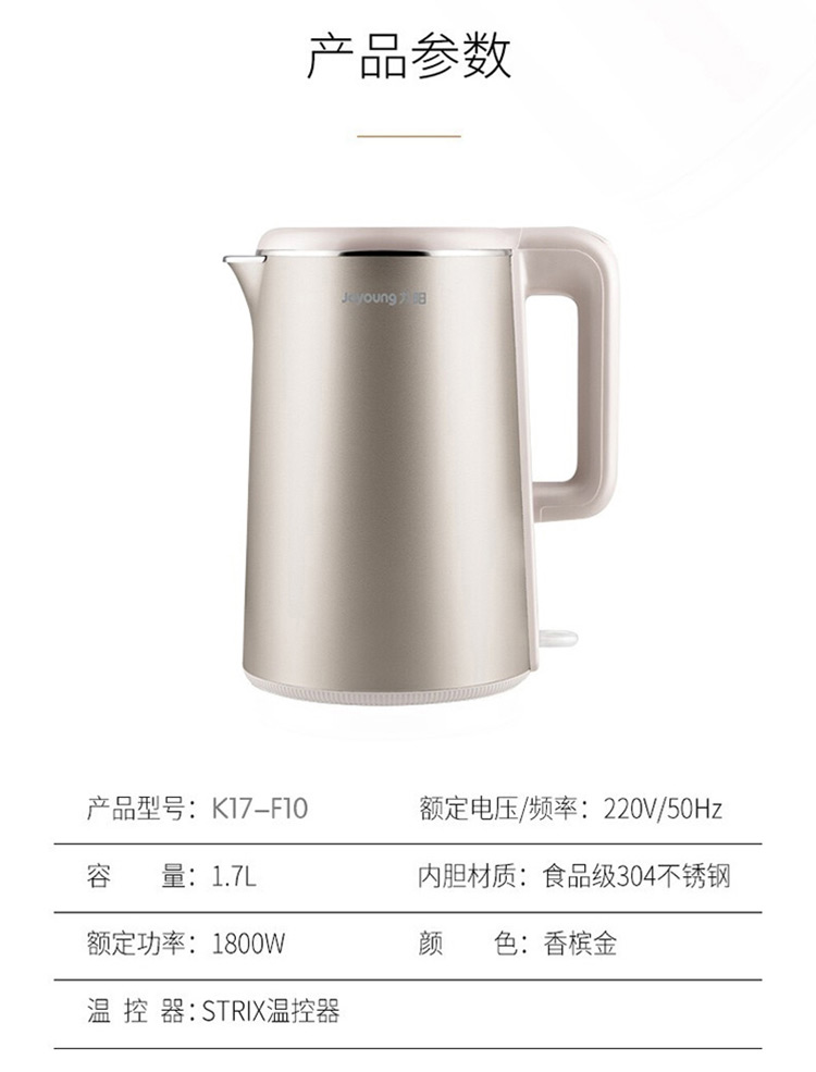 - 商品名称:九阳(Joyoung)热水壶烧水壶电水壶 双层防烫304不锈钢 家用大容量电热水壶 K17-F10