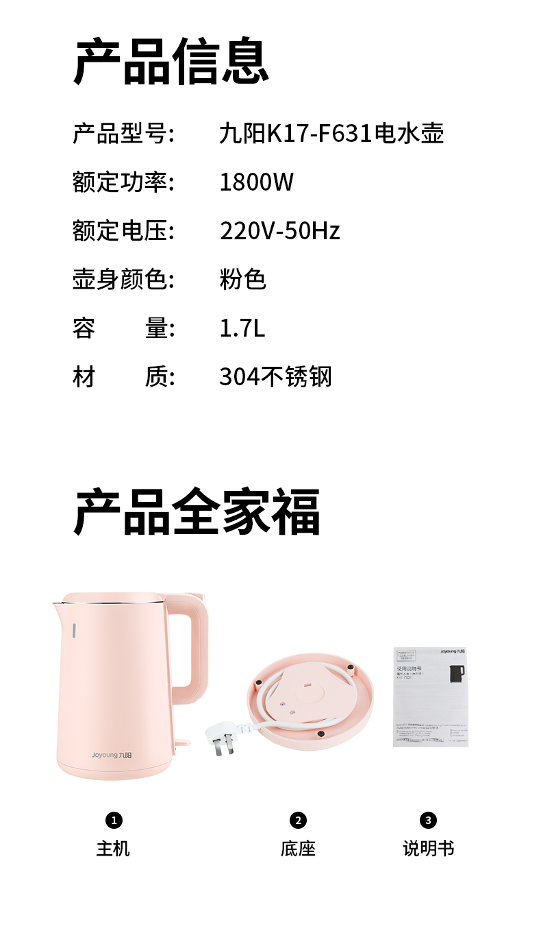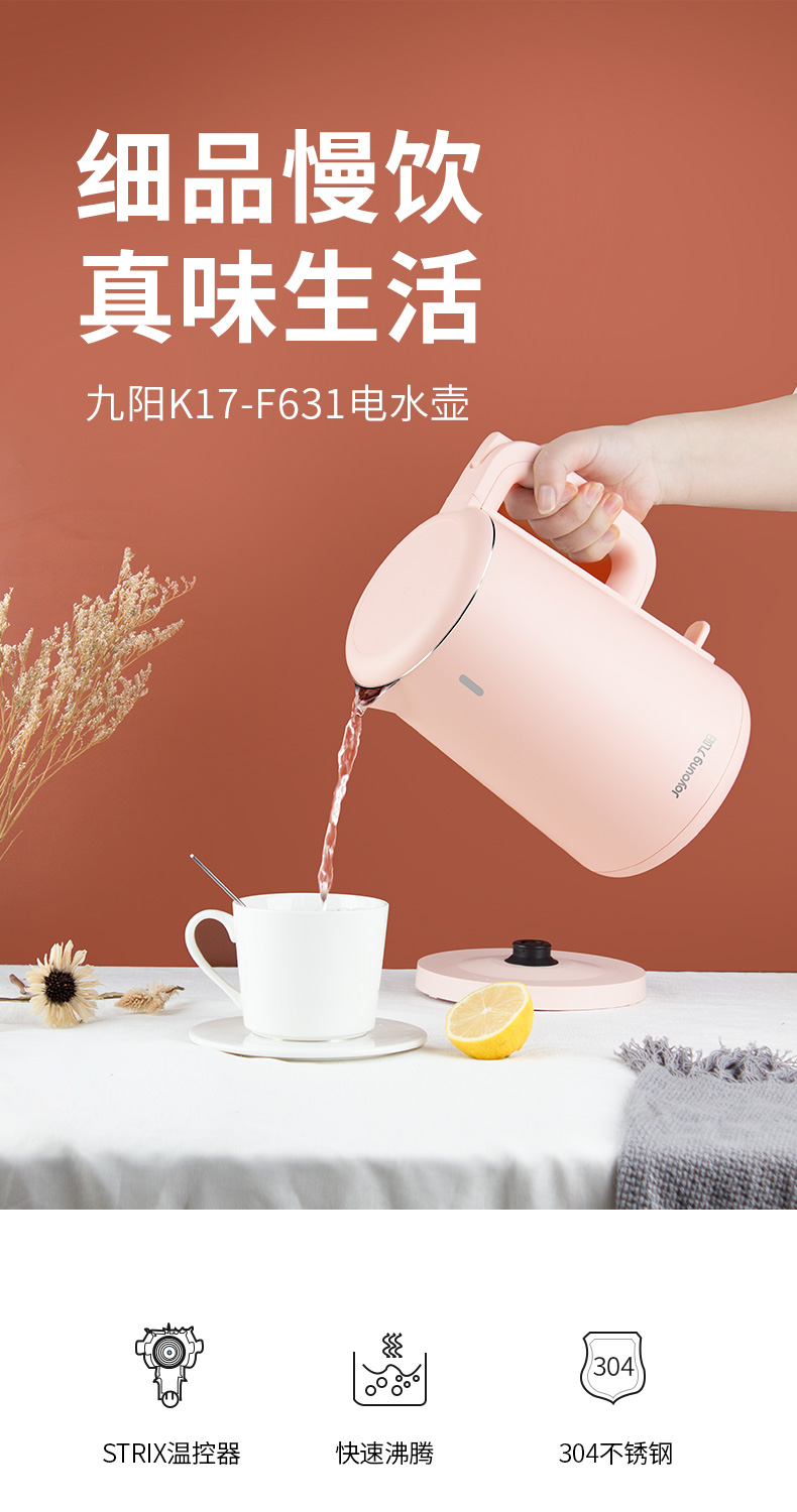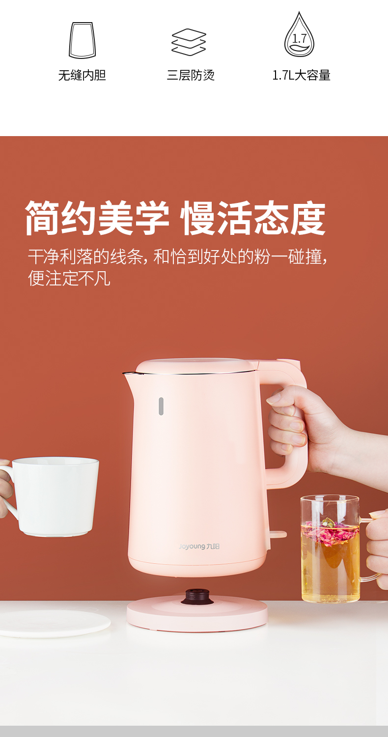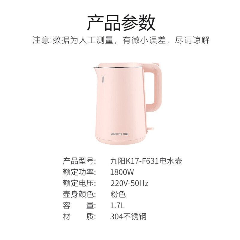 - 商品名称:九阳(Joyoung)热水壶烧水壶电水壶 1.7L三层防烫无缝内胆304不锈钢 家用电热水壶K17-F631