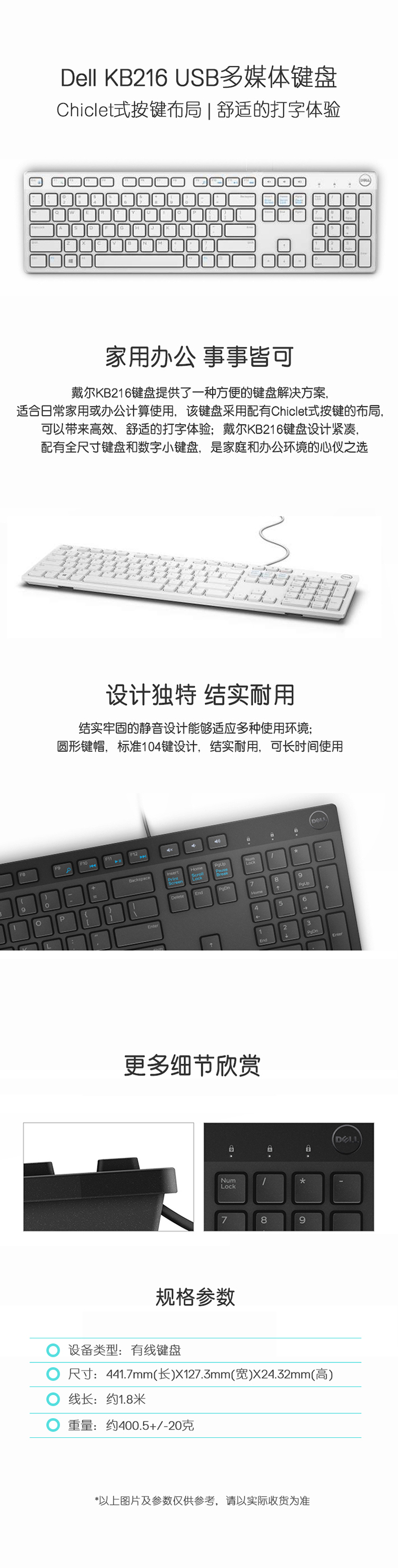 - 商品名称:戴尔(DELL)KB216 有线商务办公键盘(黑色)(适用于联想,华为,惠普等品牌台式机)