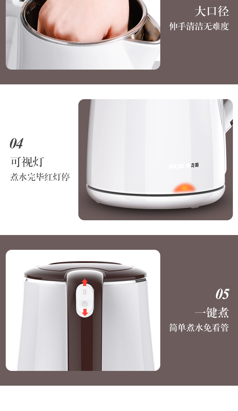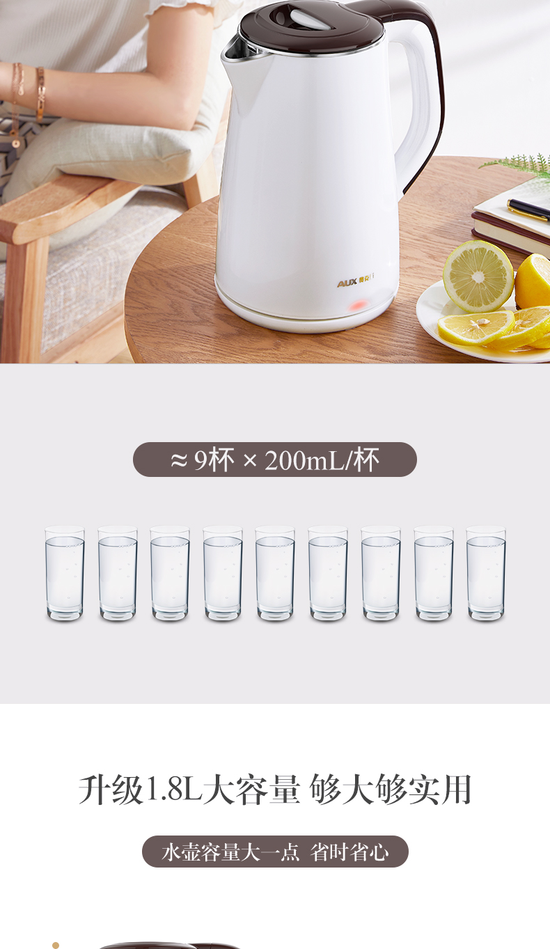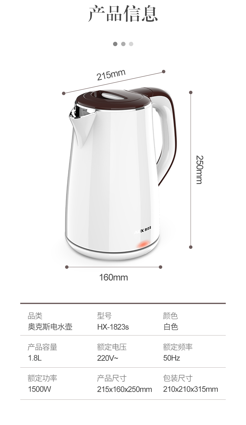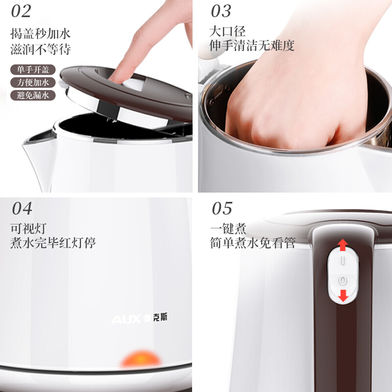 - 商品名称:奥克斯 AUX 304不锈钢电水壶 热水壶 1.8L大容量电热水三层防烫烧水壶 HX-A1823S