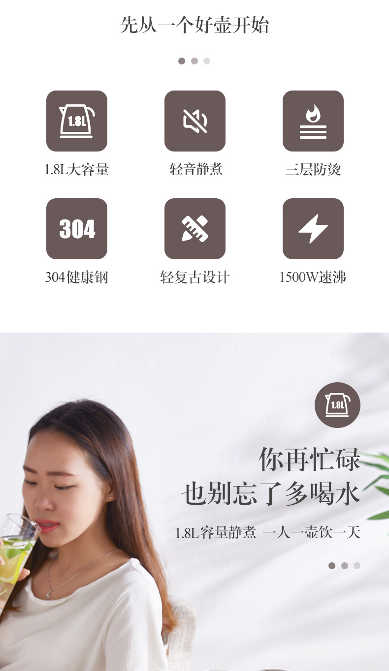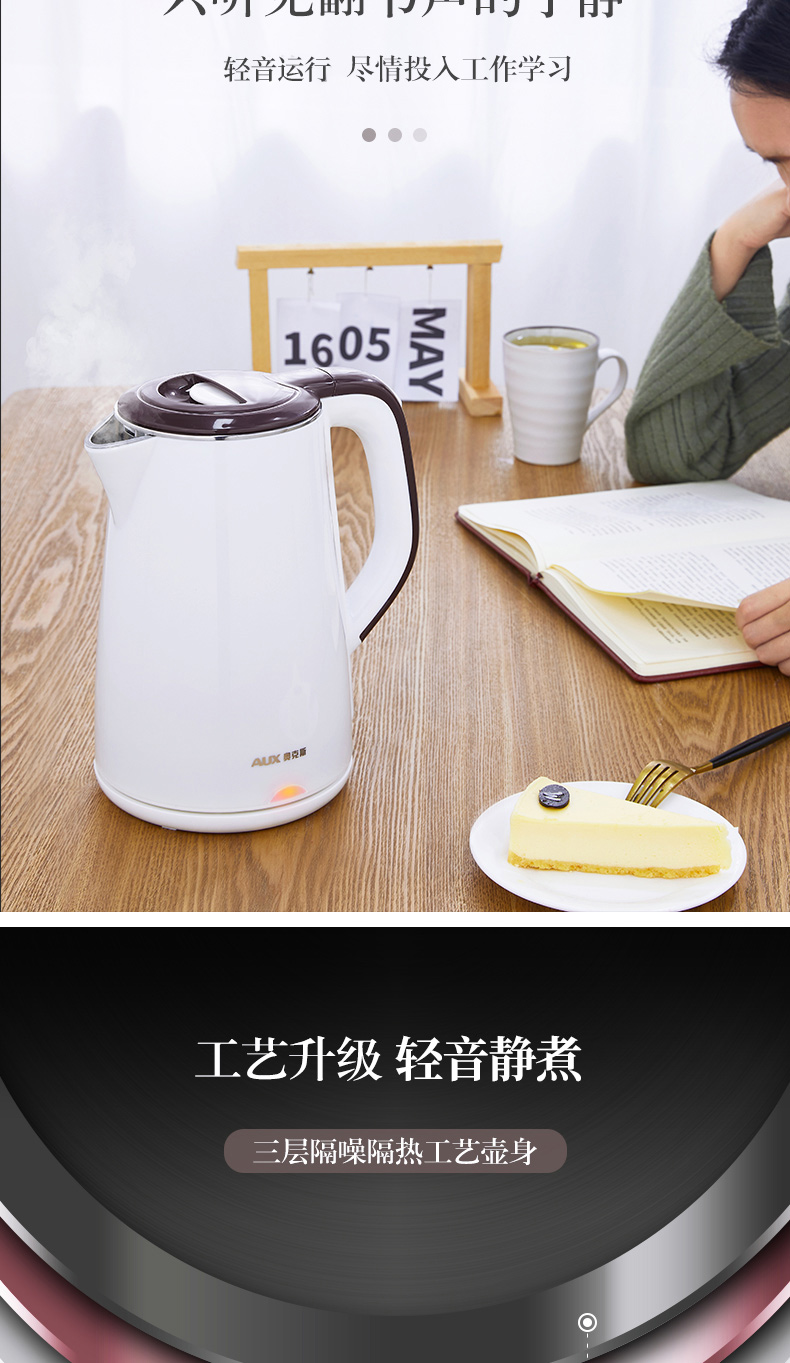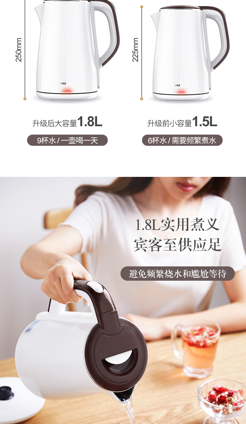 - 商品名称:奥克斯 AUX 304不锈钢电水壶 热水壶 1.8L大容量电热水三层防烫烧水壶 HX-A1823S